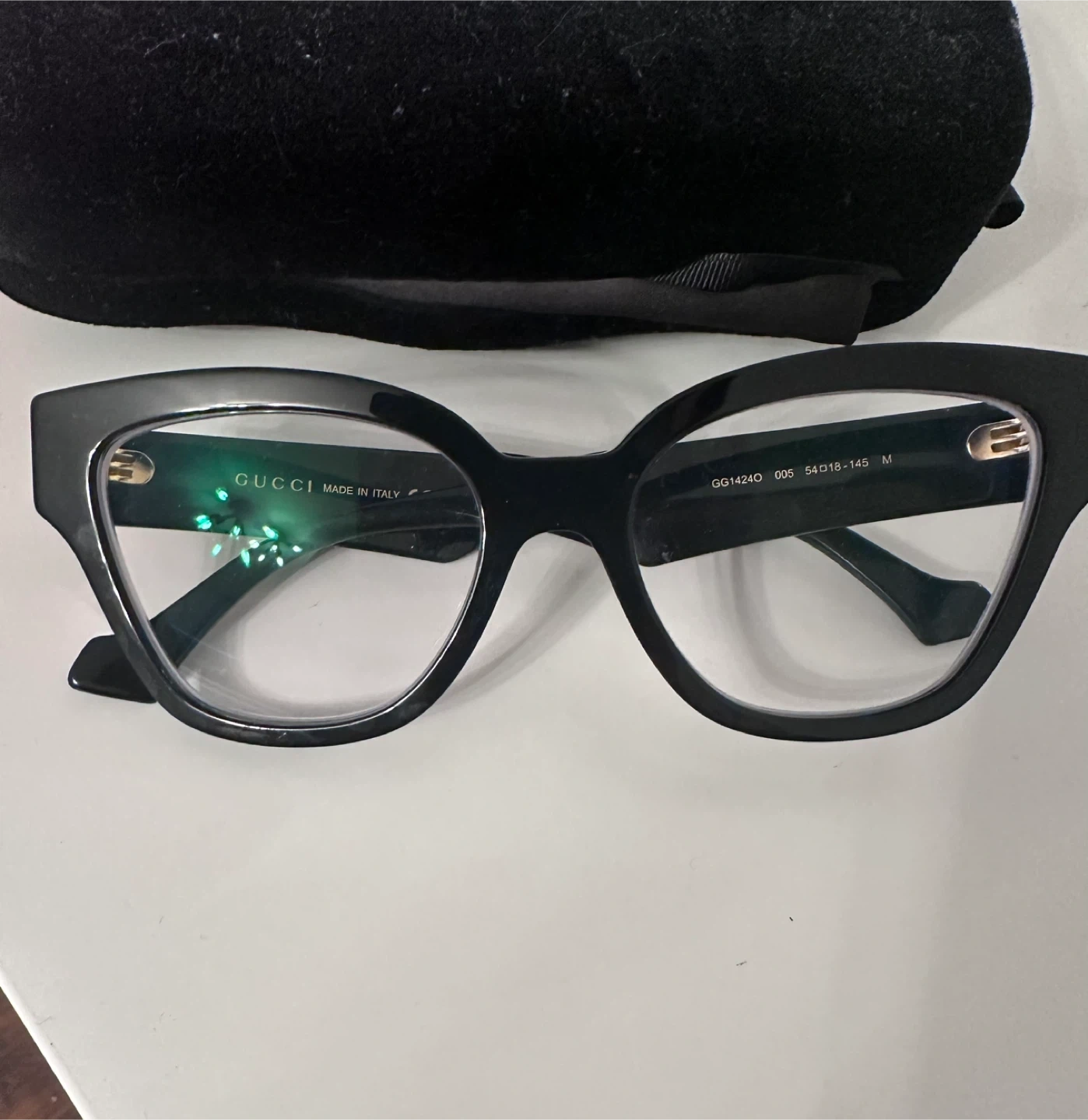 21Worn once unfortunately needed a different style. Selling a pair of Gucci eyeglasses in black.