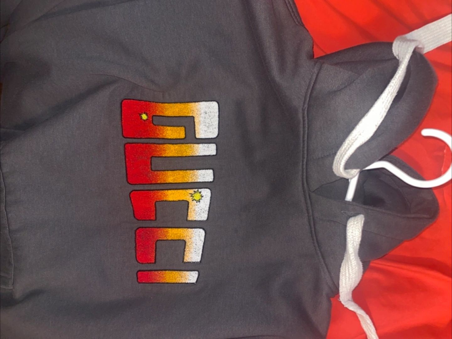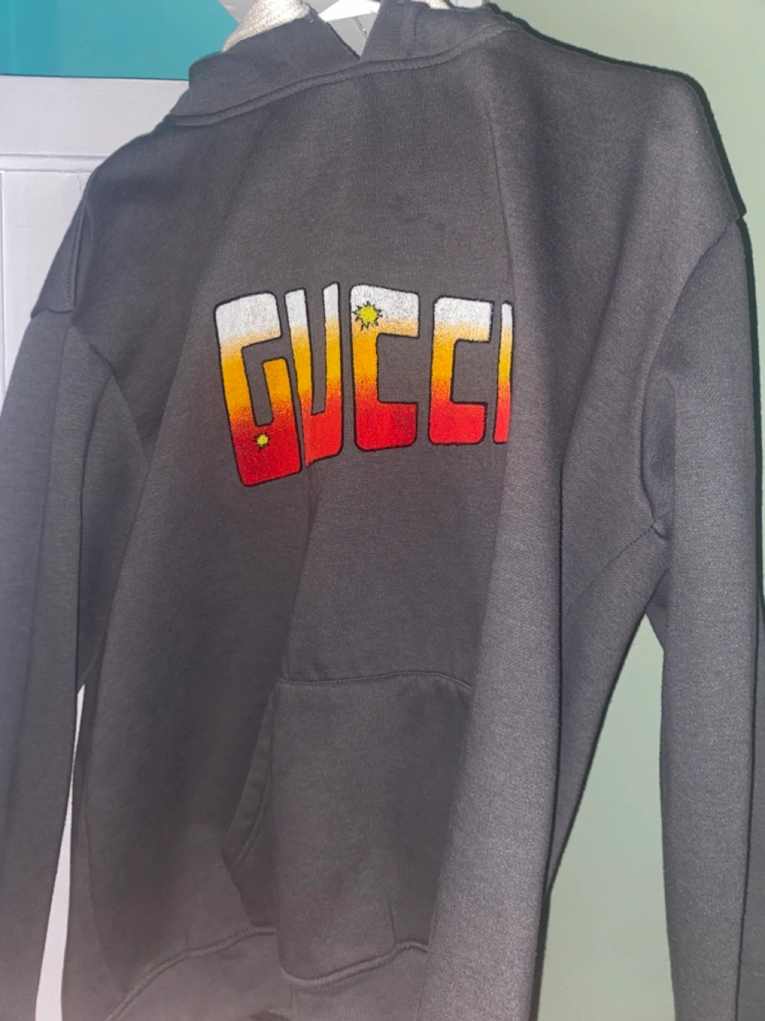 Selling a Gucci hoodie in grey. It's in good condition and ready for a new home!