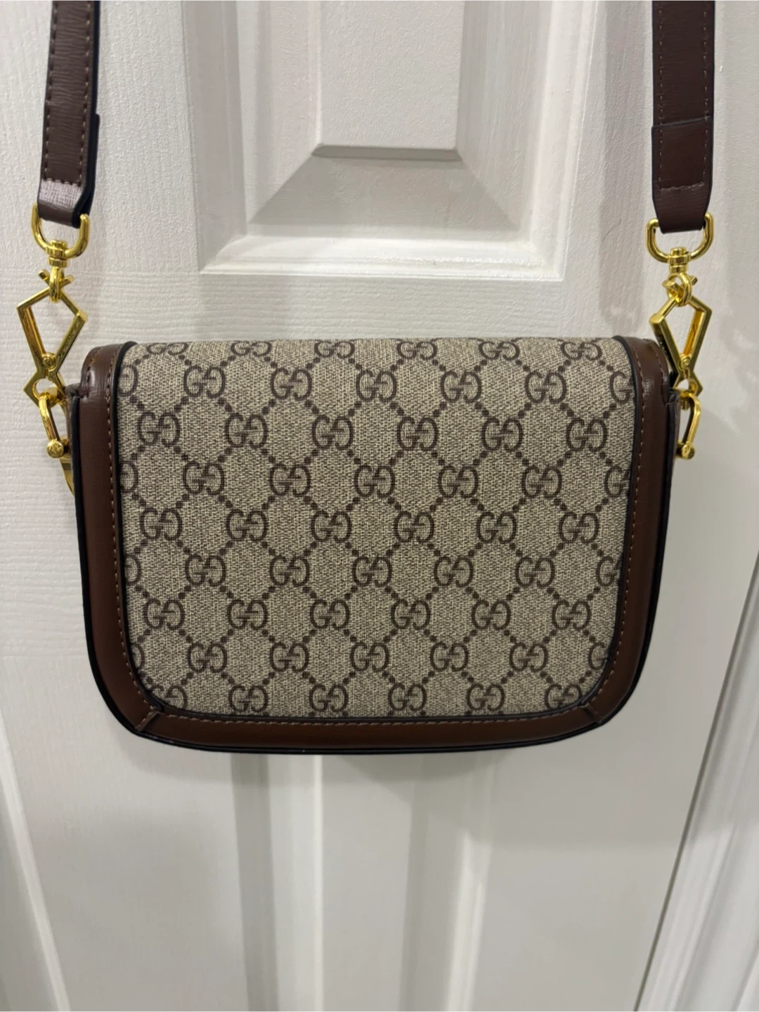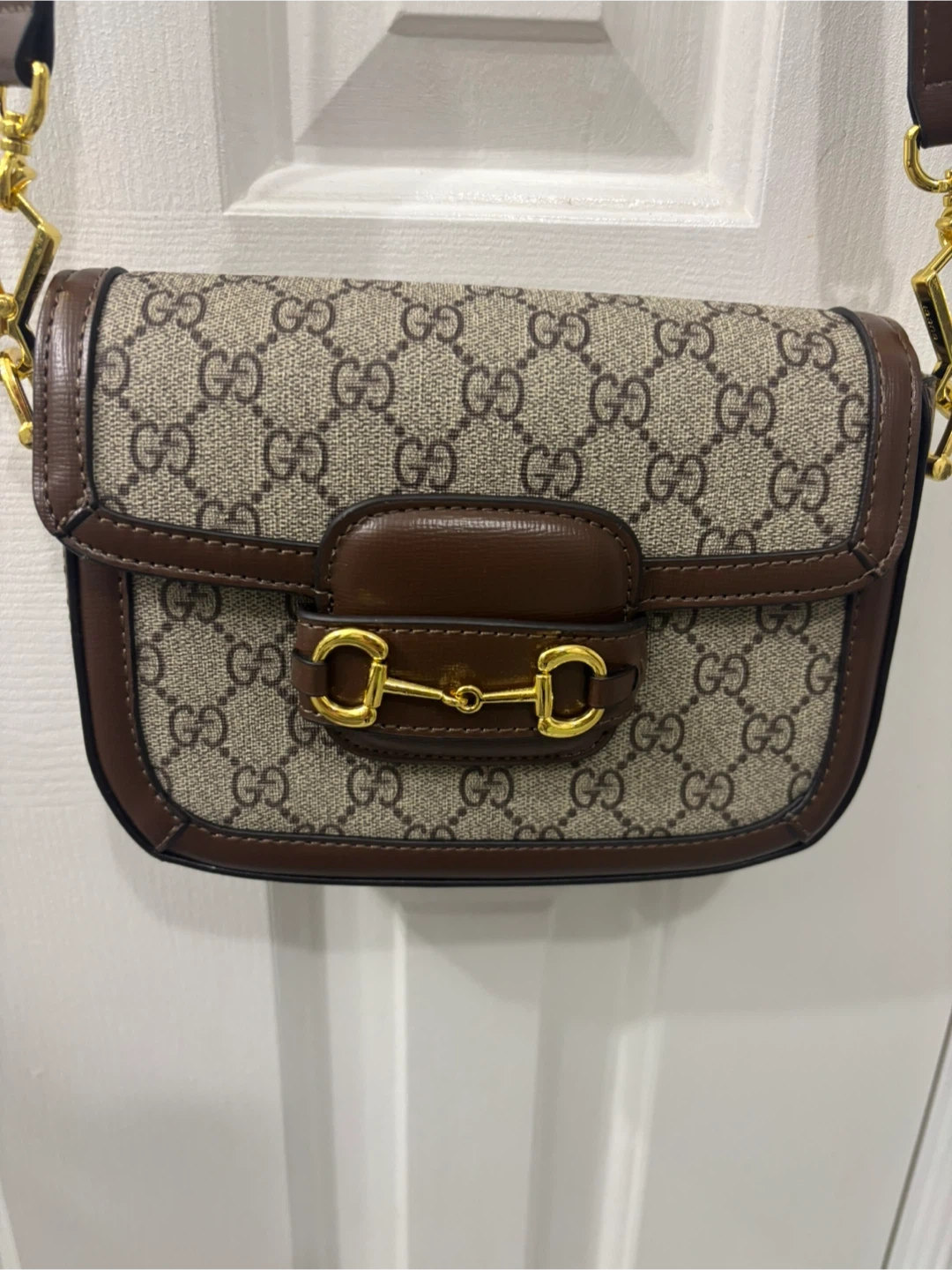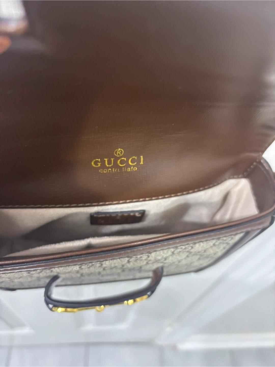 10Gucci horsebit small shoulder bag New never used Includes red green strap and leather strap This item can fit a cell phone up to 3"W x 6.6"H x .4"D Detachable Web shoulder strap drop: 13" - 20.8" and leather strap drop: 20.4" - 23.6" Web strap length: 29.5" - 44.8" and leather strap length: 44.8" - 50" Flap closure 8.1"W x 5.7"H x 2"D