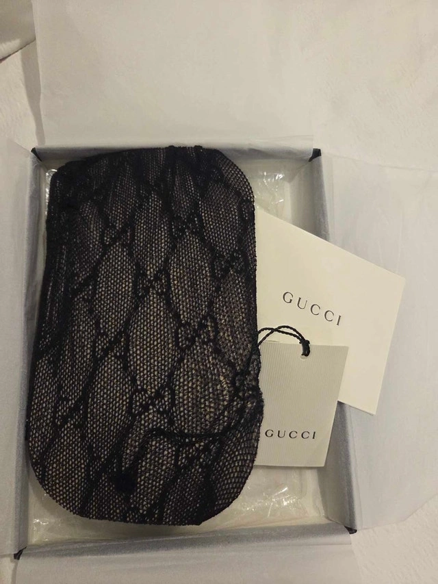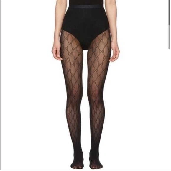 10Retails on Gucci website for $405. Used once. Stretch knitted tights with allover interlocking G pattern. Black elastic waistband. Comes in original packaging and with all labels attached. Made in Italy 80% polyamide 20% elastane