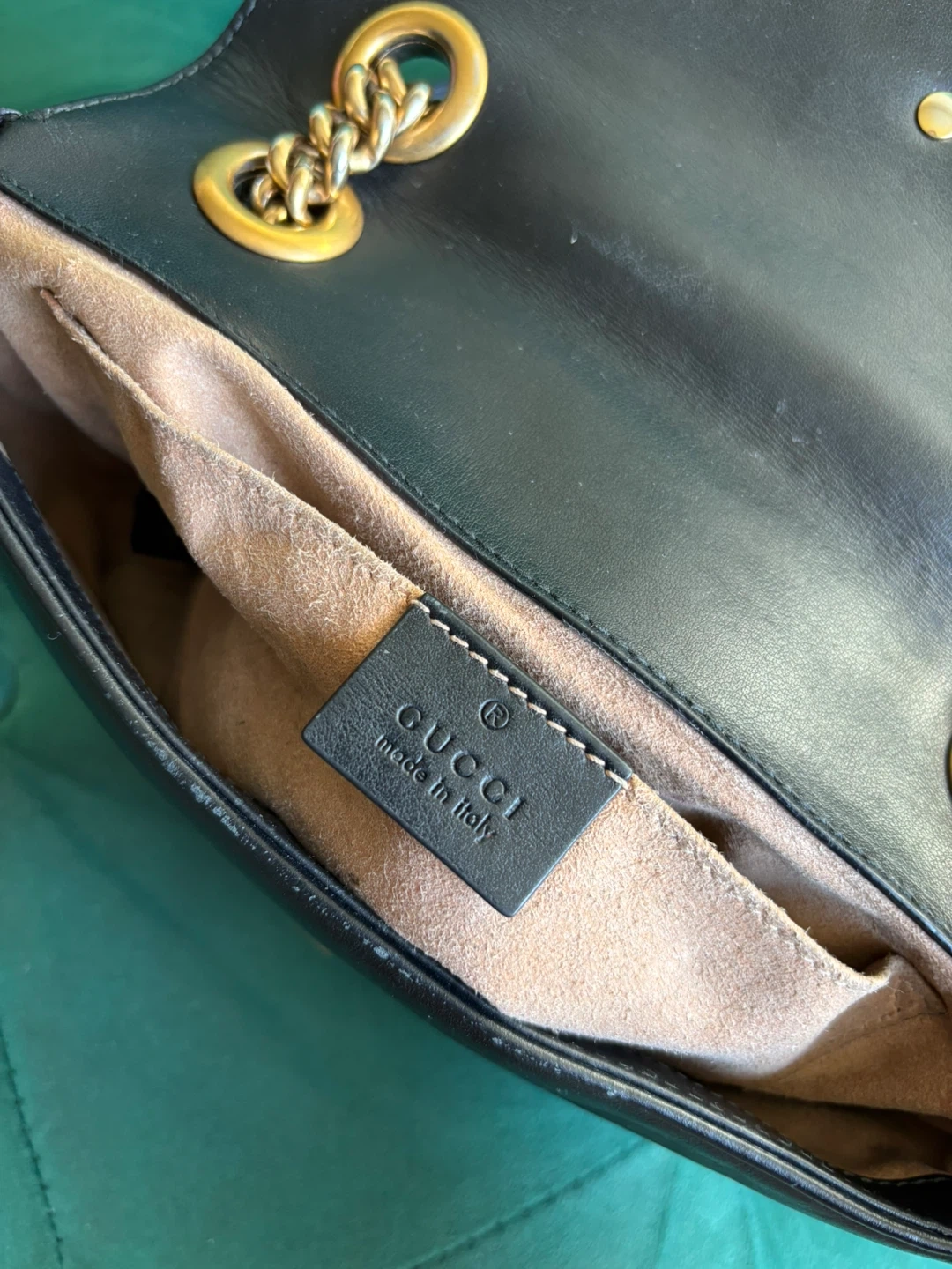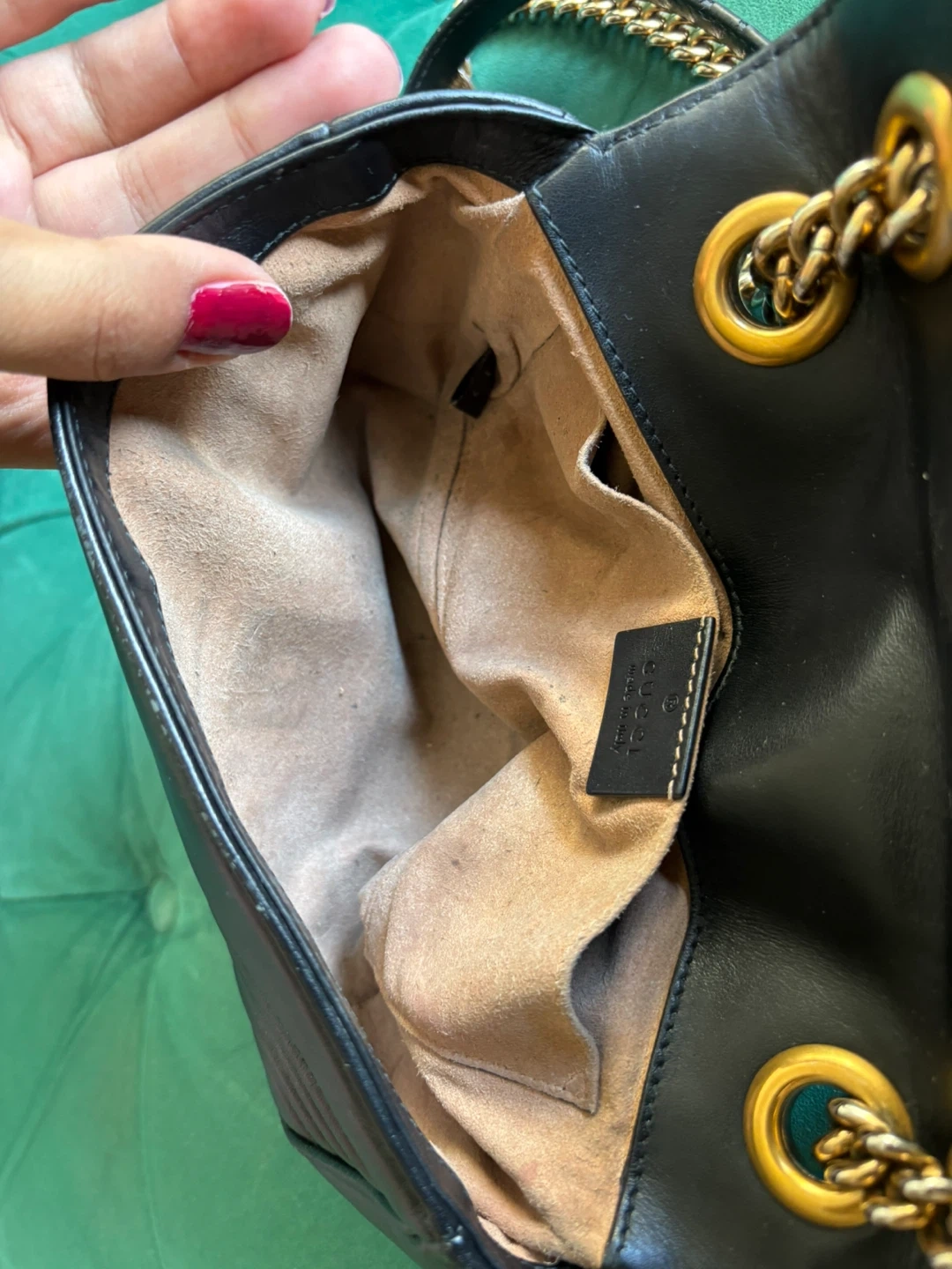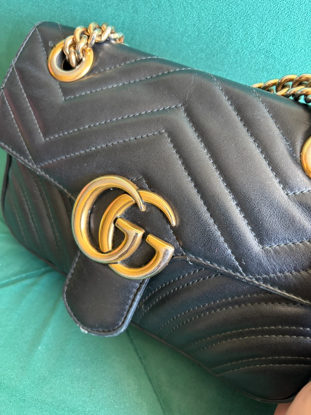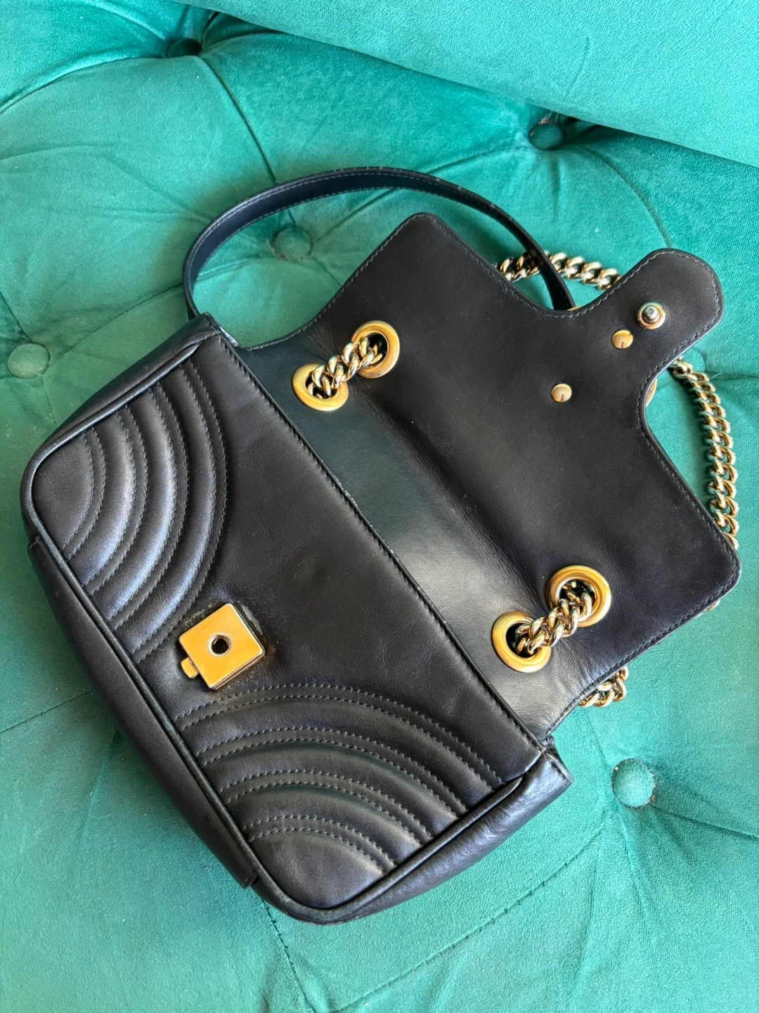 28-genuine leather - gold tone hardware - small size - there is wear around the bag - was given to me! It looks authentic but I’m not 100% sure. Price reflects that - pick up only! Located down the road from mayfield - serious buyers only please & cash preferred