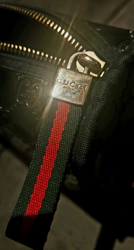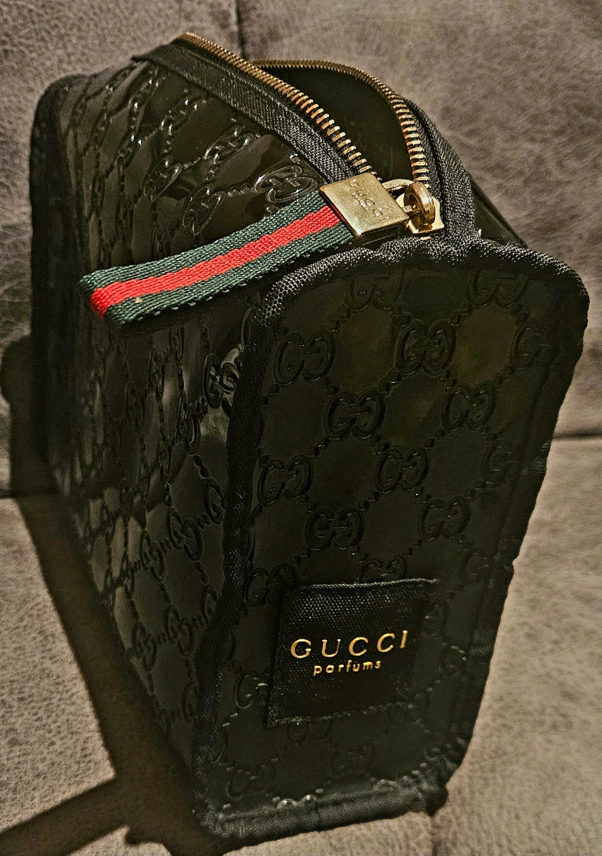 authentic, black Jelly/PVC mongrammed with embossed branding on zipper, iconic green and red pull like new, lightly used pick up at Bathurst station. willing to deliver within reasonable biking distance! :)