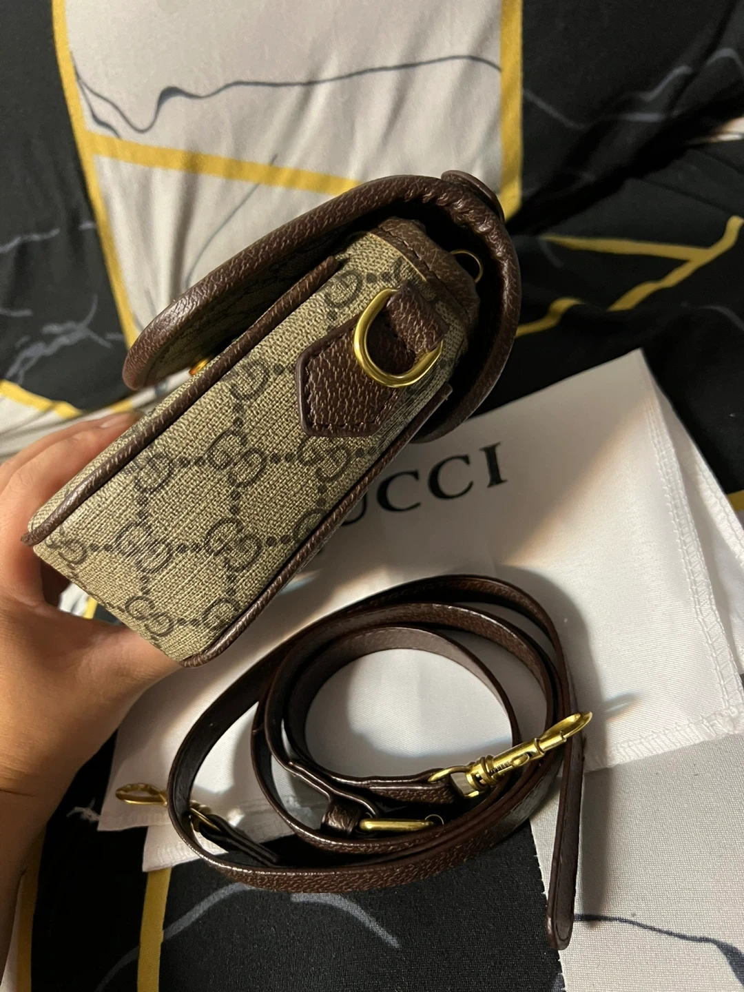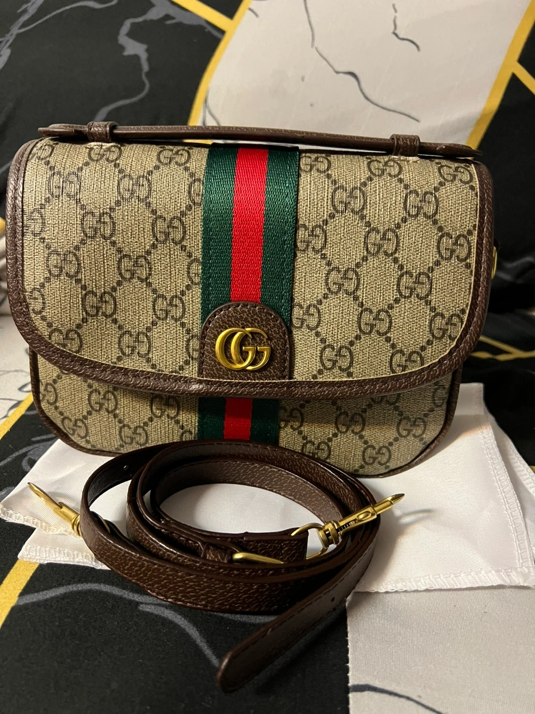 76Selling a beautiful Gucci Ophidia GG shoulder bag! New comes with its strap and dust bag. The classic GG pattern and iconic web stripe make it a timeless piece.