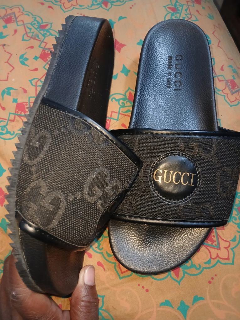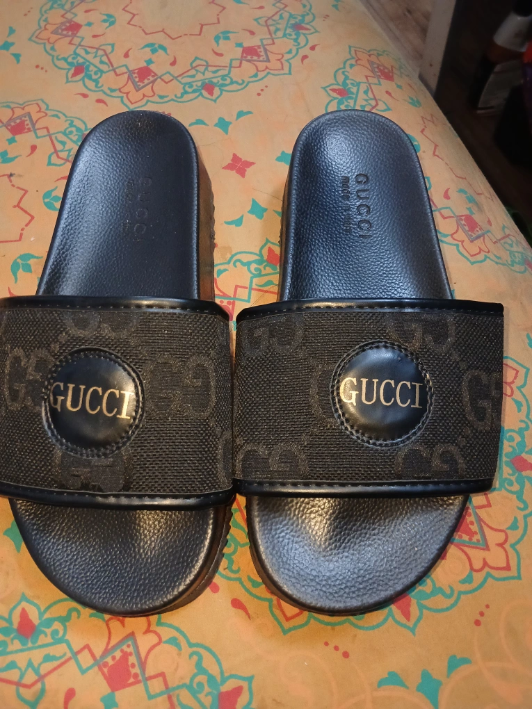 Selling a pair of Gucci slides in great condition! They're a size 9 and feature the classic Gucci logo. Perfect for adding a touch of luxury to your everyday look