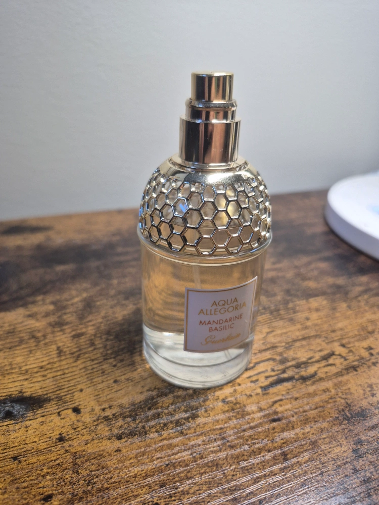 75Selling a bottle of Guerlain Aqua Allegoria Mandarine Basilic perfume! It's a lovely, refreshing scent. Perfect for everyday wear. 75ml Bottle. 80% full Cap is Missing.