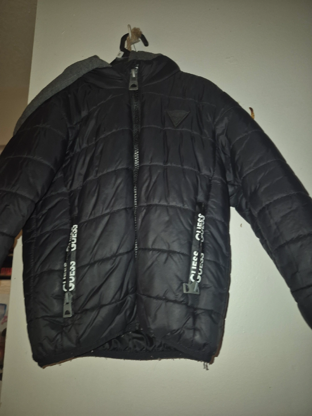 60Selling a Guess black puffer jacket. It's in great condition and ready to keep you warm! The jacket features the Guess logo on the zipper pulls. size 3t