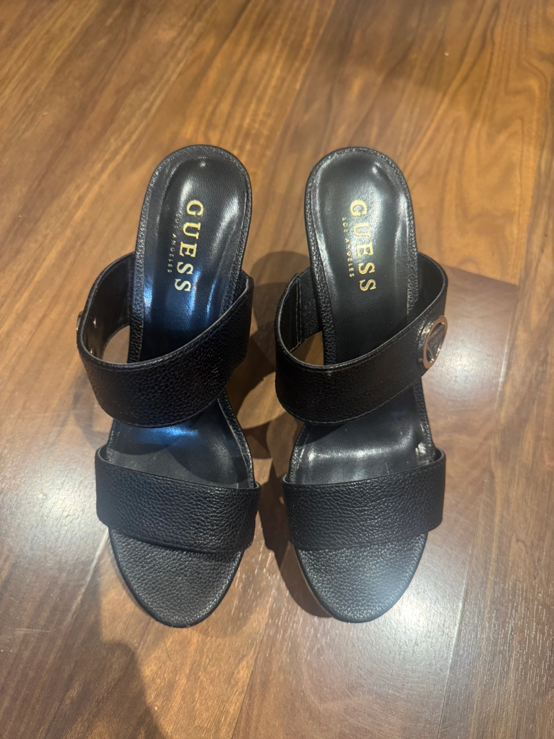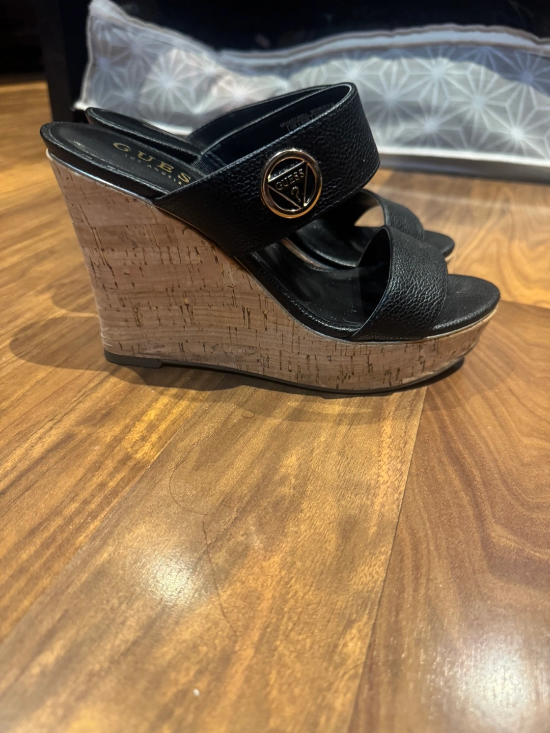 Selling a pair of Guess wedge sandals in black! They're in great condition and a size 7. Perfect for adding a bit of height and style to any outfit