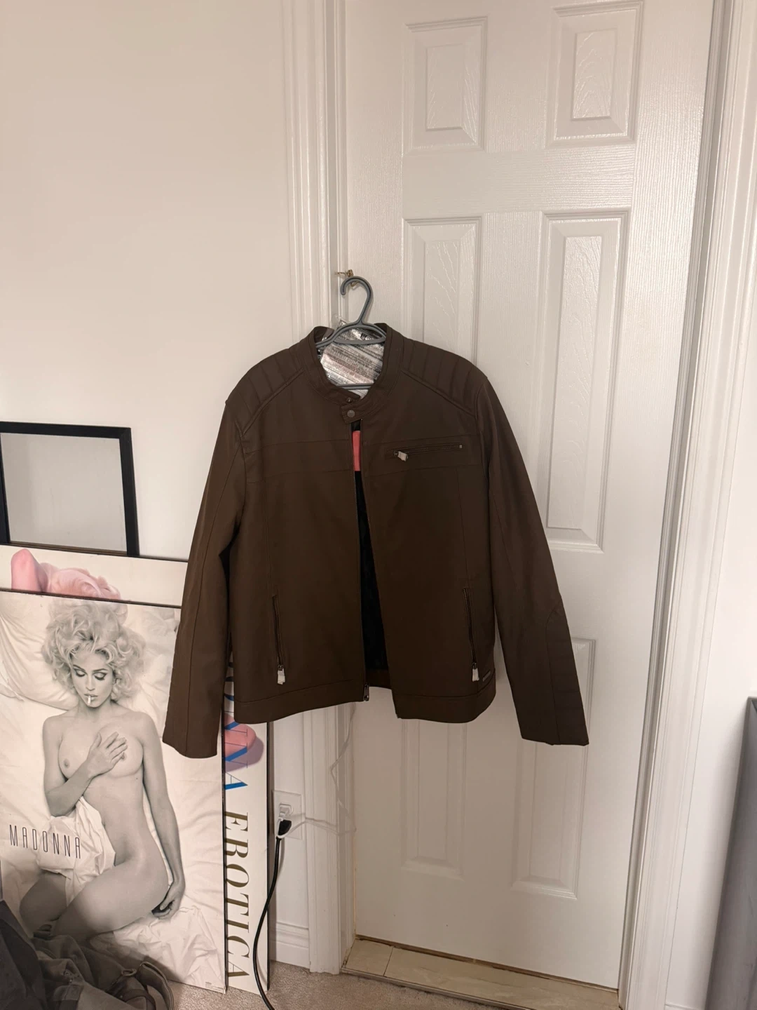 15Selling a Guess faux leather jacket in brown. It's in great condition and ready for a new home!