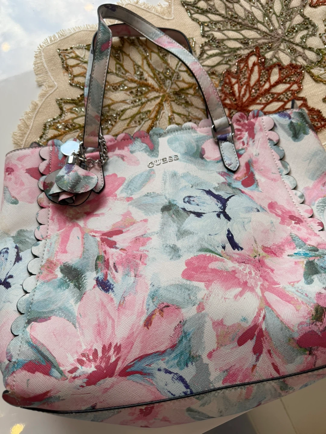 27Selling a cute Guess tote bag with a floral pattern. It's in great condition and perfect for carrying your essentials. The interior lining features the Guess logo. It's a stylish and practical bag for everyday use! Could meet for pick up in Cobourg Peterborough or surrounding