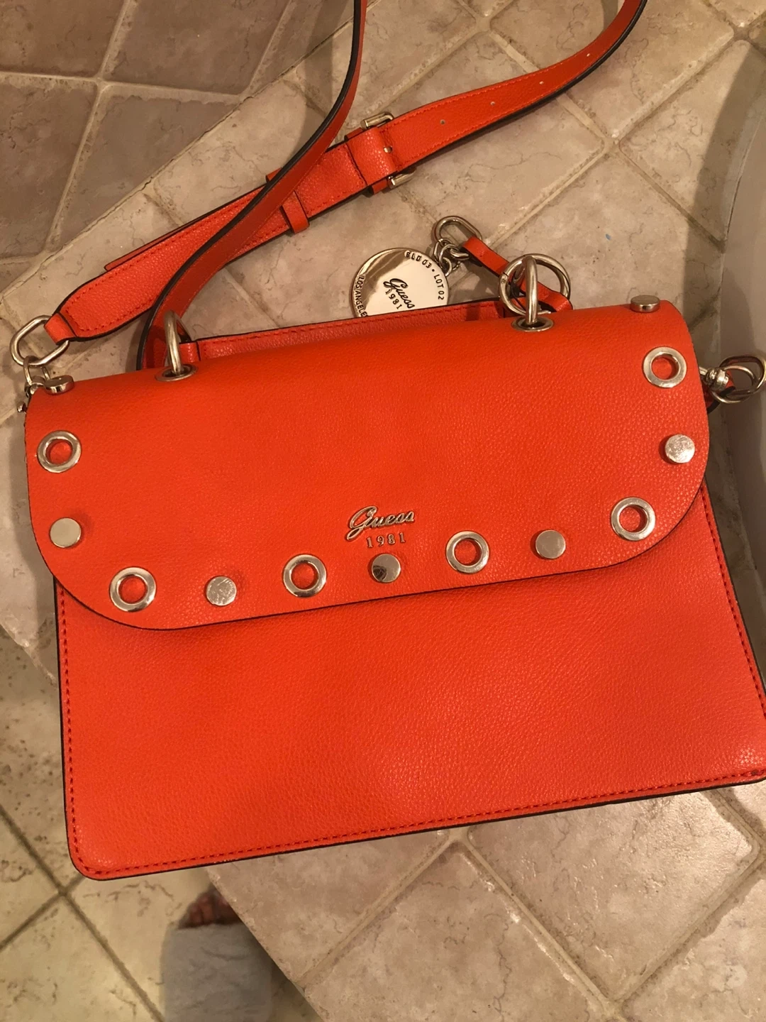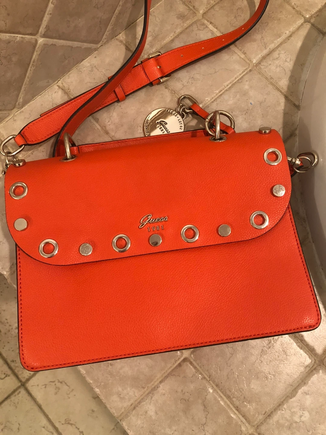 Selling a bright orange Guess satchel bag! It features silver hardware and a detachable shoulder strap. Perfect for adding a pop of color to any outfit