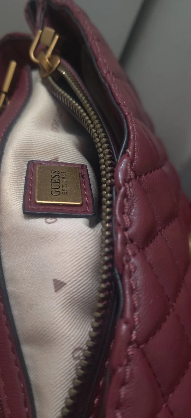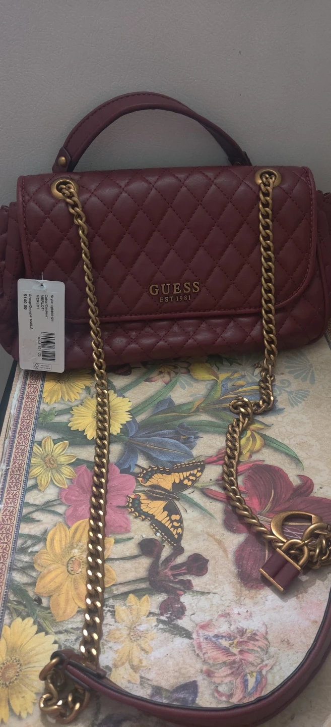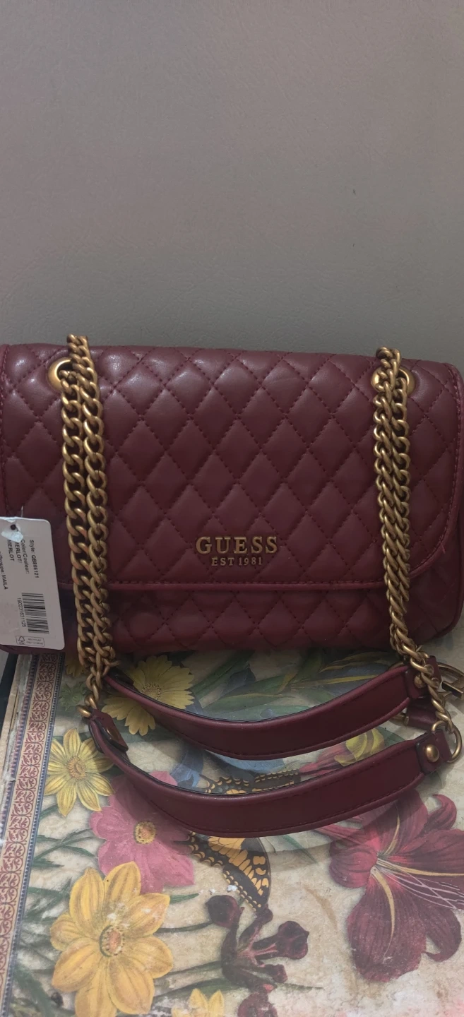 1000+This Guess shoulder bag is in great condition and ready for a new home! It features a quilted design and a gold chain strap. The colour is a lovely burgundy, perfect for adding a touch of elegance to any outfit. Bag havent been used but was in storage so minor marks or dents might be possible