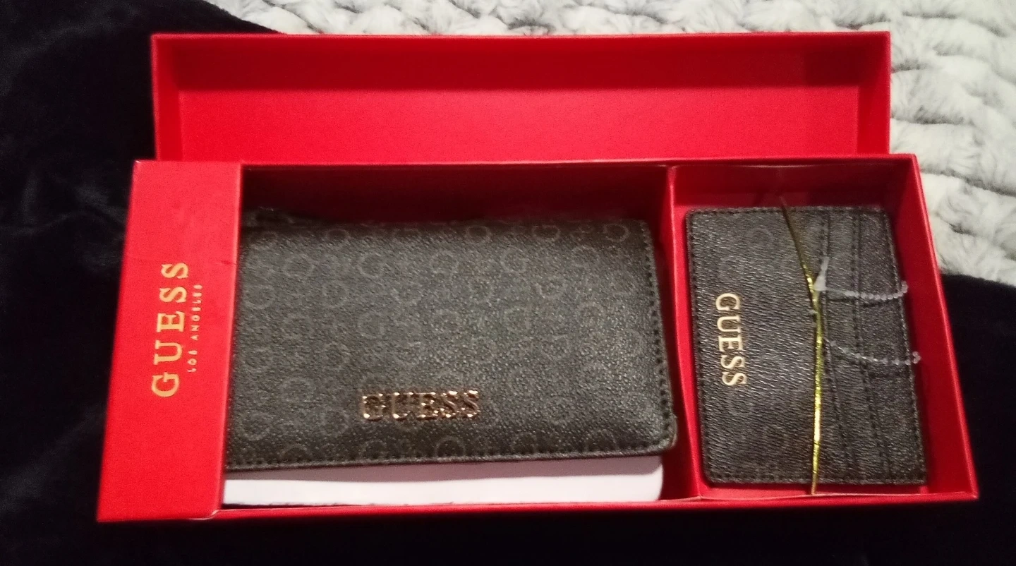 10Selling a brand new Guess wallet and card holder set! It comes in its original box, perfect as a gift for someone special or a treat for yourself. The set features a stylish design with the Guess logo.