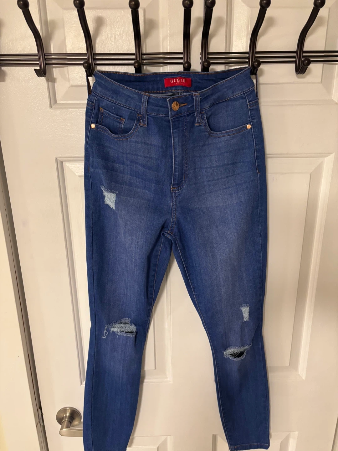 161Selling a pair of Guess women's jeans in size 26. These are a stylish distressed design with a touch of sparkle on the back pocket! They're in great condition and ready for a new home