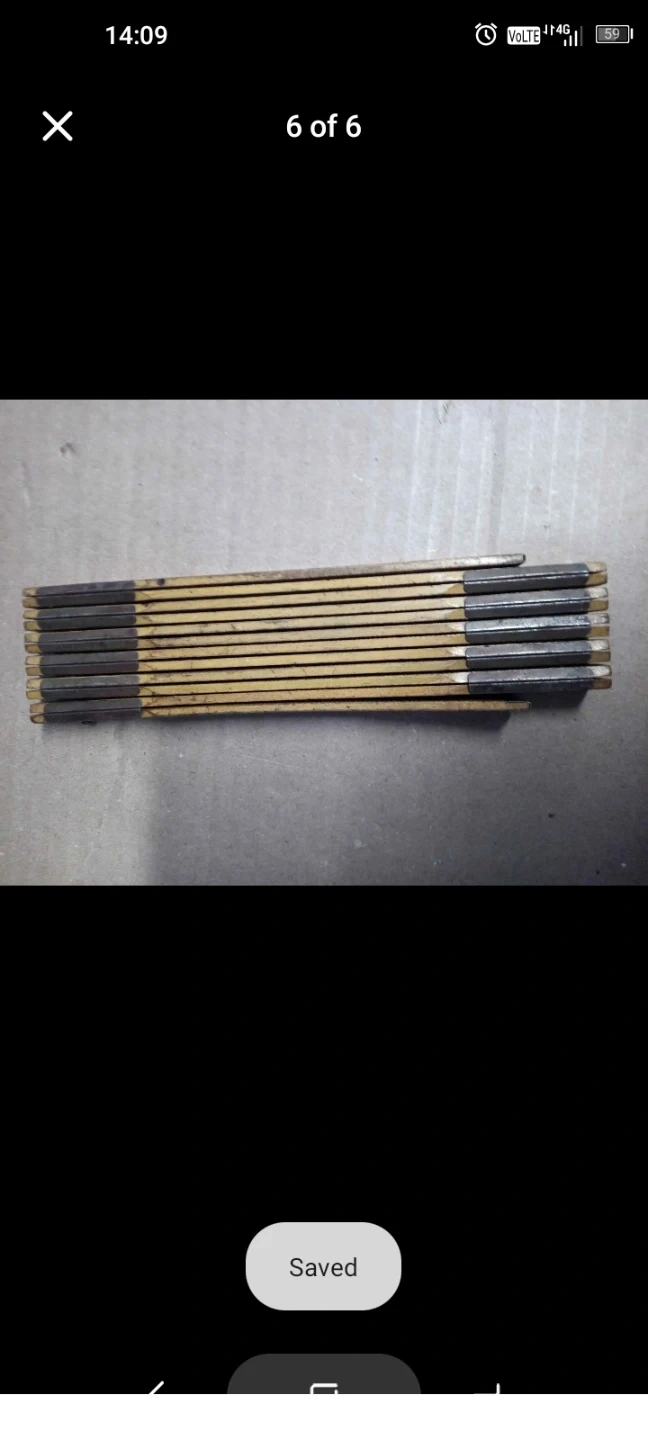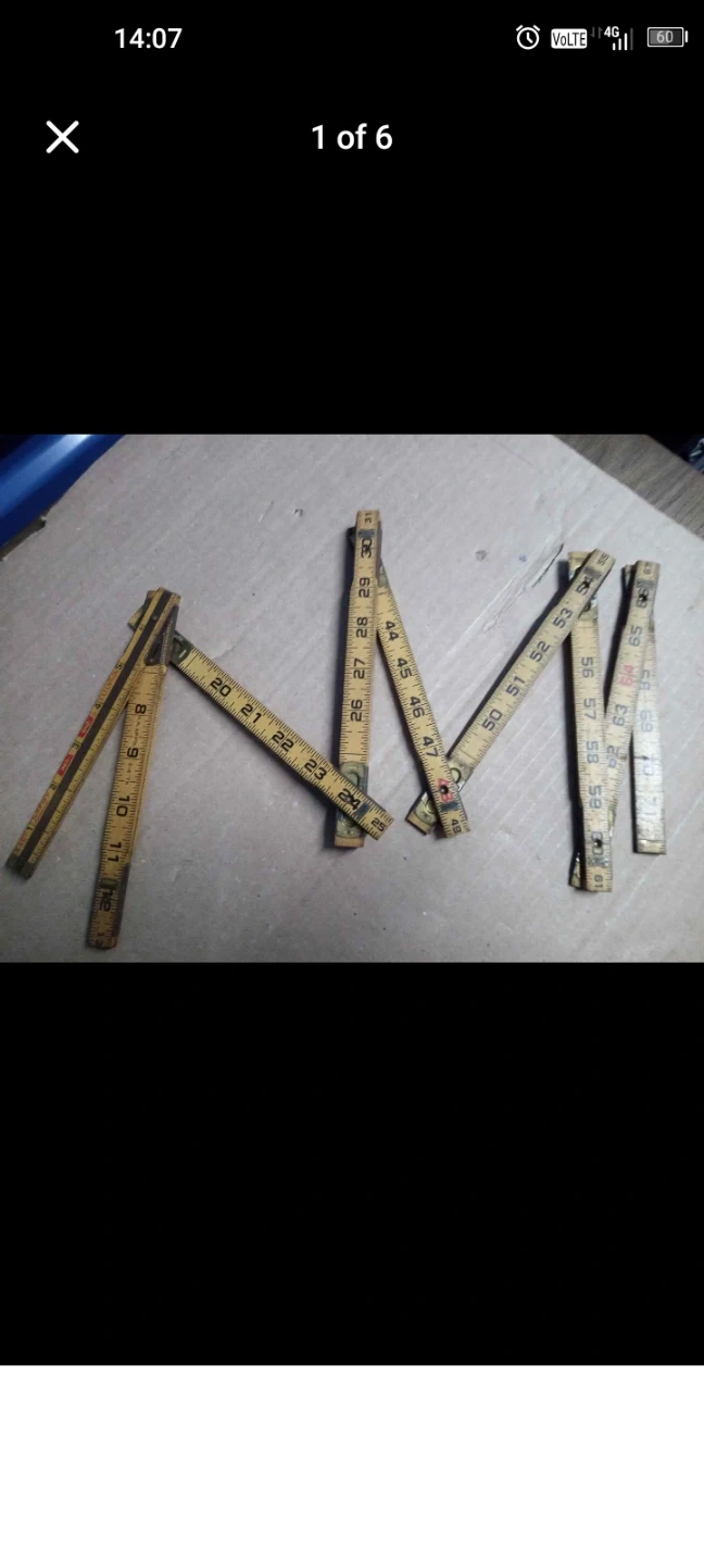 This is a vintage folding ruler, great for measuring projects. It's made of wood with metal hinges and markings. The ruler extends to provide longer measurements.
