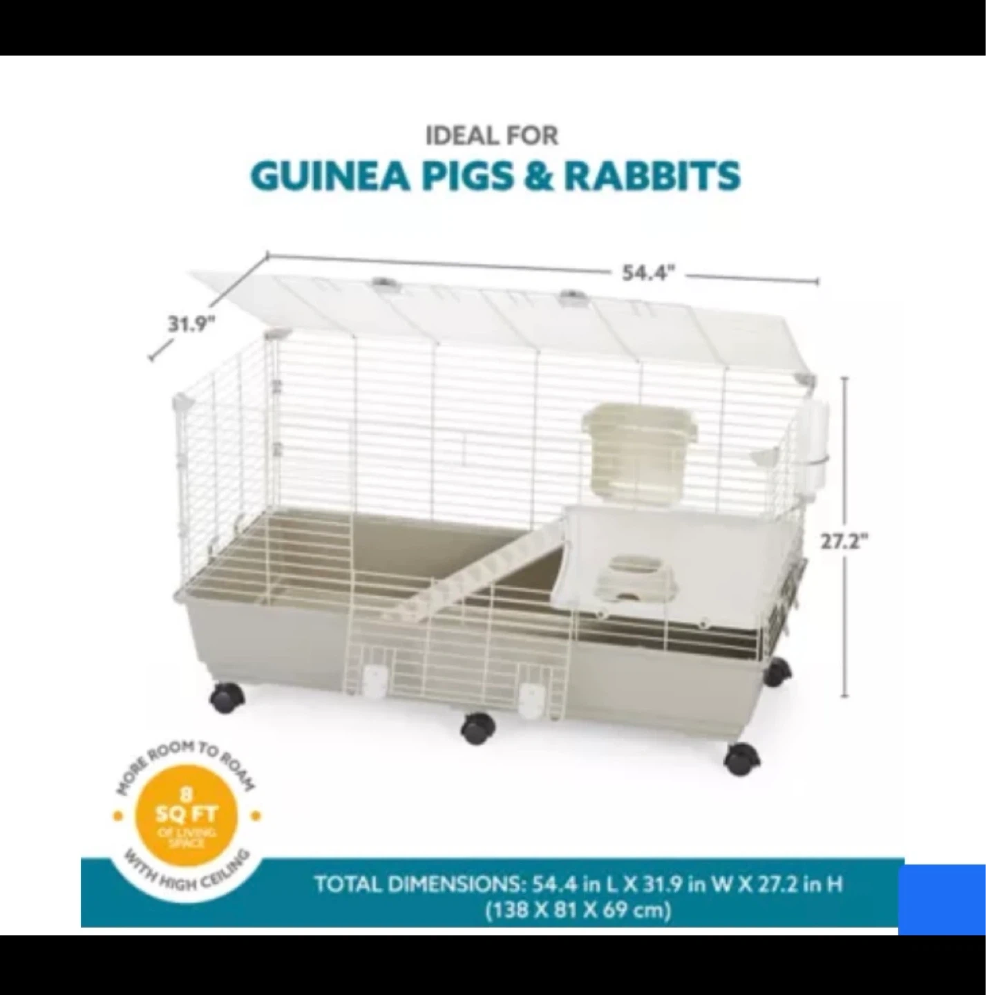 Selling a cage perfect for guinea pigs or rabbits! It's in good condition and comes with all the components you see in the photos. The dimensions are 54.4 inches in length, 31.9 inches in width, and 27.2 inches in height, giving your furry friend plenty of room to roam