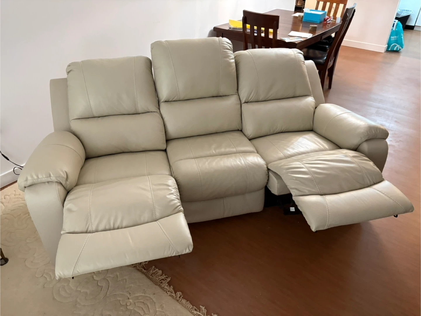 3-Seater Beige Leather Reclining Sofa