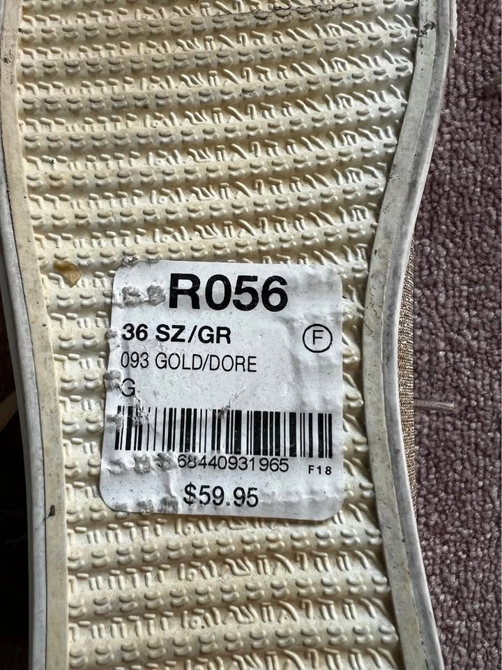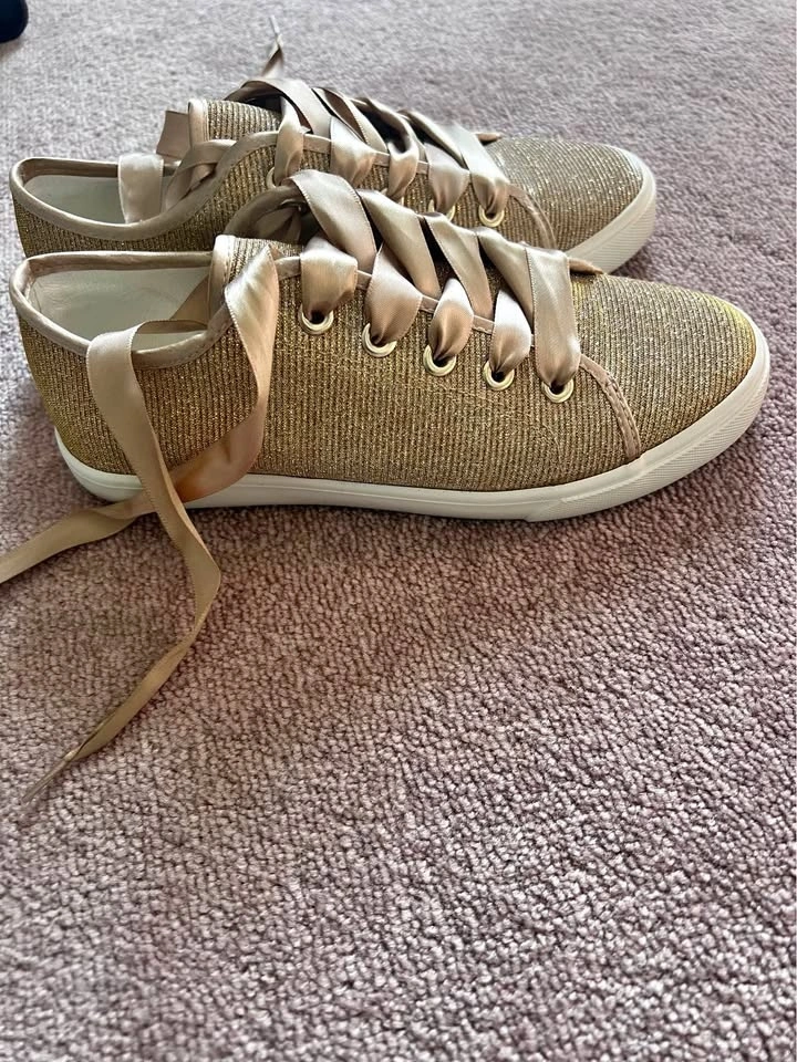 Le Chateau gold blinged out sneakers, worn once for graduation. Size 6. Clean with no scuffs or damage. Perfect for a young lady who wants comfort and bling!!