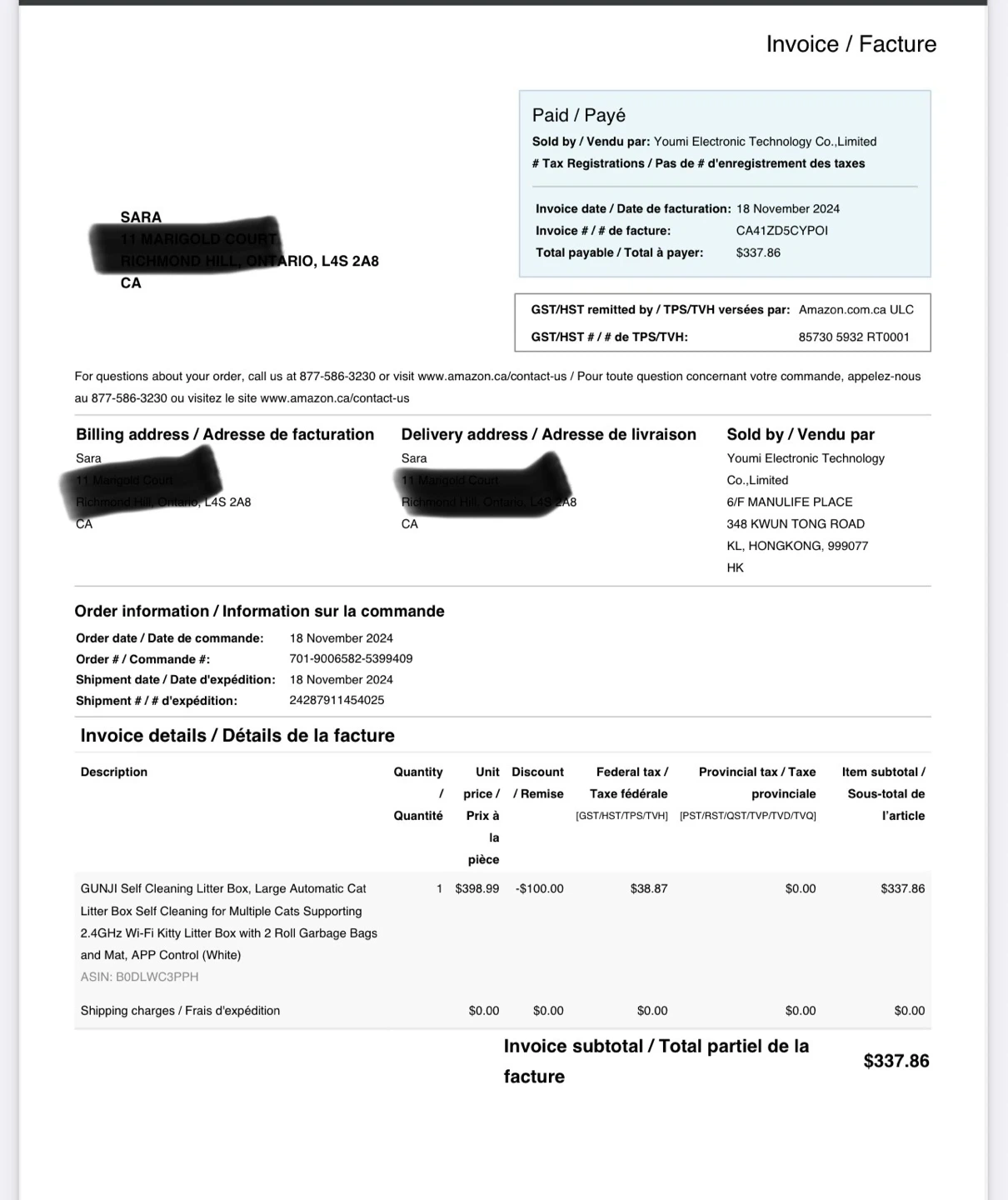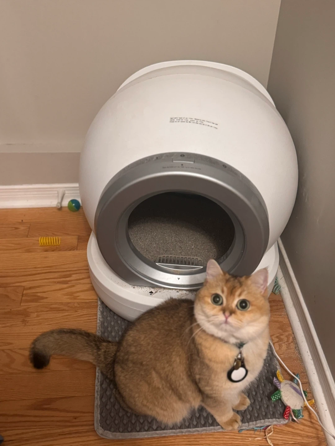 5Hi everyone, My mom bought me this fancy litter box from Amazon because she loves me and wanted me to be a fancy boy. But… I didn’t like it! After a few months, I didn't use it. Now my mom has no space for it, so she’s selling it. It’s clean, almost new, and works perfectly. Maybe another kitty will love it more than I did! Thanks for helping my mom find it a new home. 🐾💛 Selling a GUNJI Self Cleaning Litter Box! It's a large, automatic cat litter box that supports multiple cats. It also comes with 2 roll garbage bags and a mat. Originally bought for $398.99
