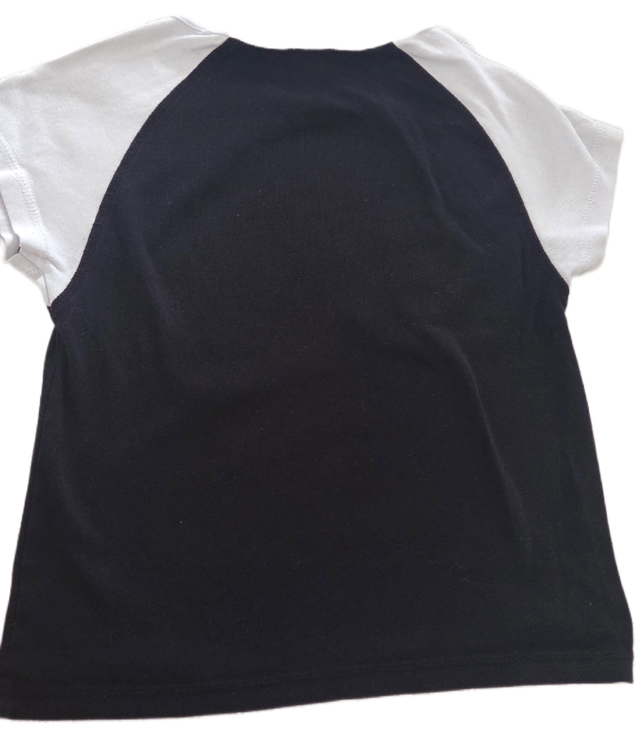 10A Guns N' Roses T-shirt with a black body and white sleeves! It features the classic Guns N' Roses logo on the front. Great for any fan! (100% cotton)