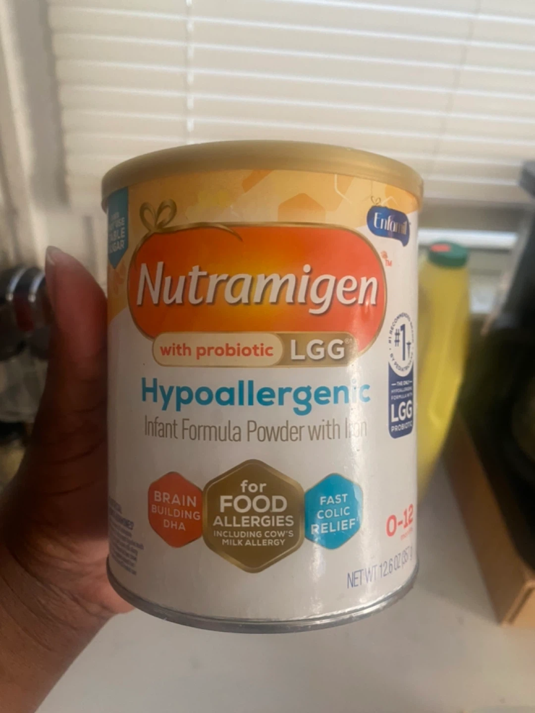 Nutramigen LGG hypoallergenic infant formula powder with iron. Designed for food allergies and fast colic relief. Suitable for ages 0-12 months. Net weight 12.6 oz (357 g). Use by Dec 2026.20 each can all three for 50$