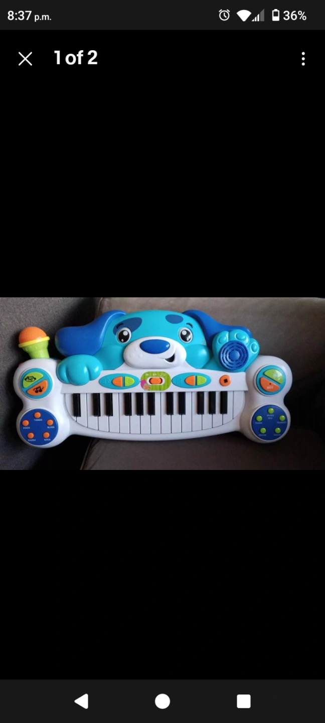 Fun musical keyboard for toddlers. Features a cute puppy design, colourful keys, and various sound effects. Includes a microphone. Great for imaginative play and musical development.