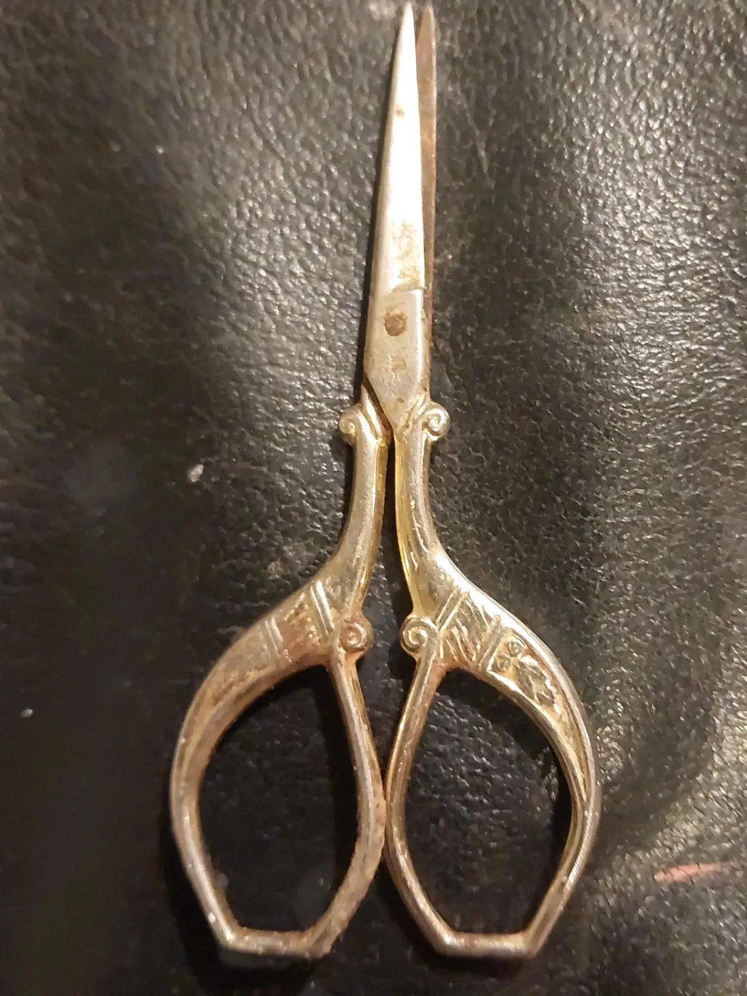 Selling a pair of vintage embroidery scissors. They have a unique design and are perfect for crafting or collecting. They show some signs of wear, adding to their vintage charm