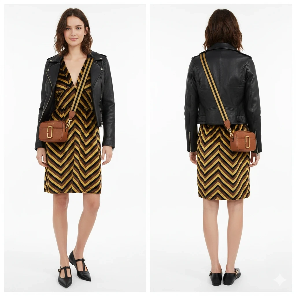 Stunning Marc by Marc Jacobs "Jagz" silk-blend burnout velvet dress in a bold, retro-inspired chevron pattern.