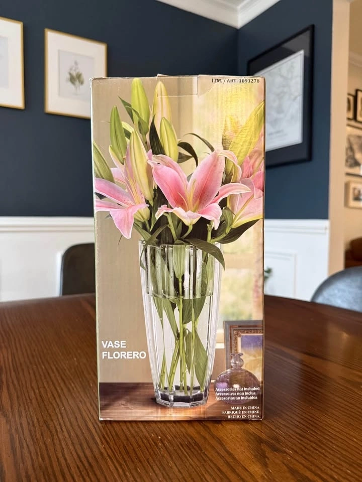 Beautiful brand new crystal decorative flower vase, still in the original box. Perfect for fresh bouquets, artificial flowers, or as a standalone centerpiece. Tall and sturdy, making it ideal for roses, lilies, or larger floral arrangements. Looks great on dining tables, entry tables, mantels, or office spaces. Brand: Crystal King. Material: Lead-free crystalline glass. Height: 30 cm / 11.8 inches. Condition: Brand new in box.