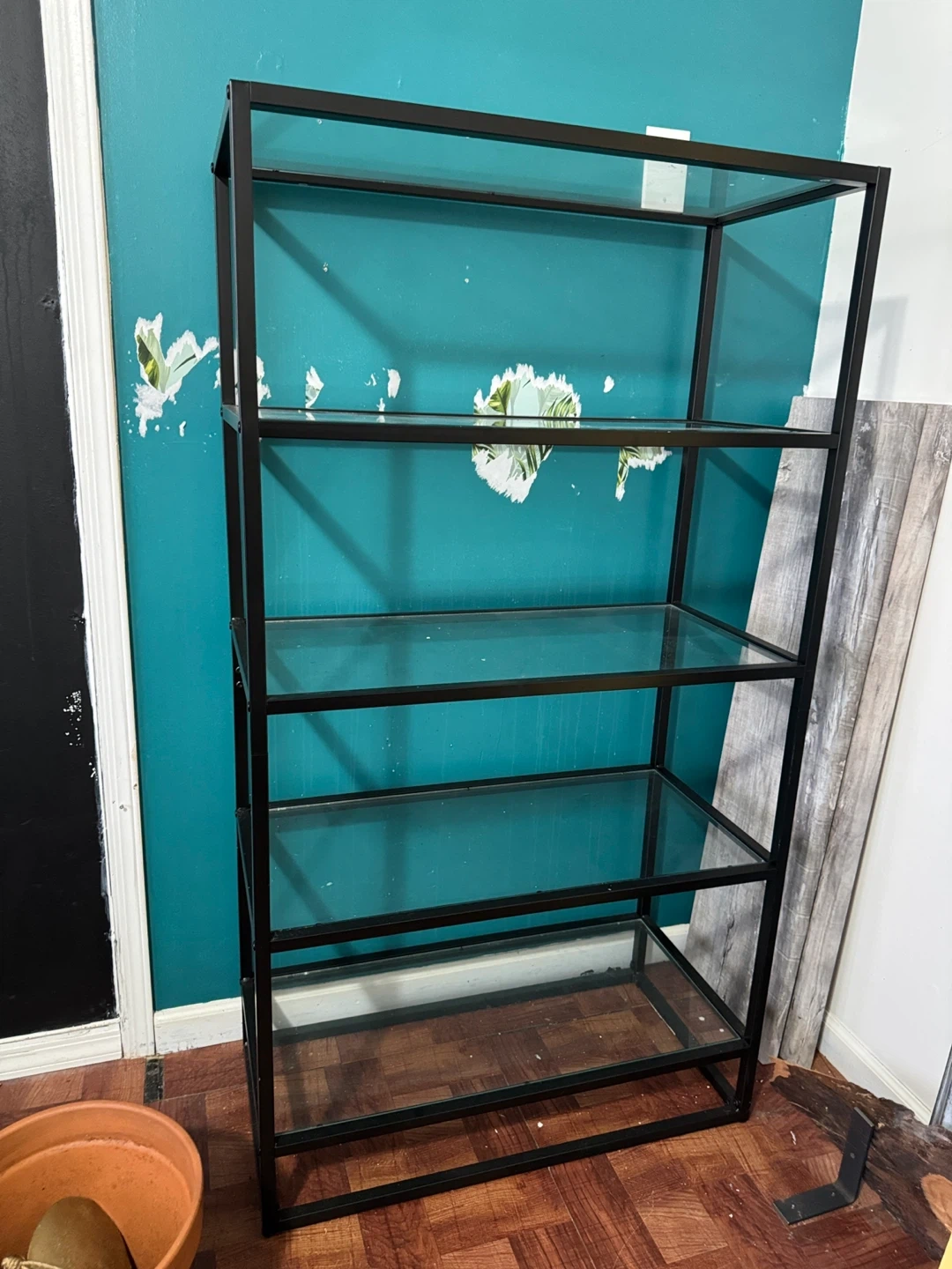 Buy & SellBlack Metal 5-Tier Shelf with GlassBlack Metal 5-Tier Shelf with Glass$53This black metal shelving unit features five glass shelves. It's perfect for displaying books or decor. Offers ample storage space for your home.ConditionGoodDimensions32x15x58WHERE TO MEETShorehamView MapSELLERverifiedElizabethRocky Point963 reviews0 chats·0 favorites·8 viewsSEND CHAT TO SELLERHi Elizabeth! I’m interested in your listing.Hi Elizabeth! I’m interested in your listing.Get the Karrot app to chatSign In to chat