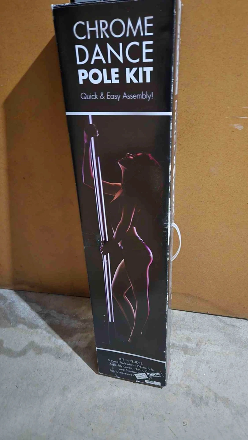This is a chrome dance pole kit! It includes a 3-piece pole, extensions, and a base. It's quick and easy to assemble!