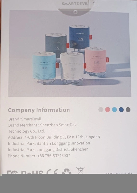 NEW SmartDevil Portable Mini Humidifier, 500ml. Still in box. Located in Summerside, SE London. Smoke-free home. Pick up only. This humidifier uses ultrasonic vibration to create a fine mist, perfect for dry air in air-conditioned rooms. It has a large 500ml capacity and a large spray volume. Recommended to use clean tap water or mineral water; do not use pure/distilled water or essential oils. It operates quietly (under 30dB) and features a night light with two modes (constant and breathing). It has an automatic shut-off when the water level is low. Before first use, soak the filter cotton core completely. It has two spray modes: continuous and intermittent (spray 3 sec, pause 2 sec). It needs to be plugged in to work (no battery included).