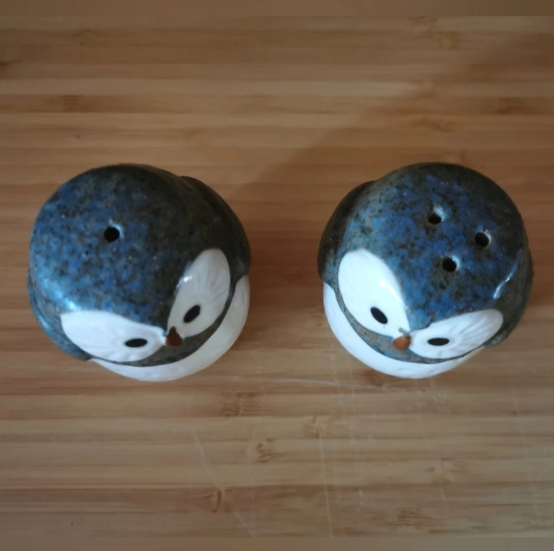 Beautiful Vintage Japan Stoneware Owl Salt and Pepper Shakers.