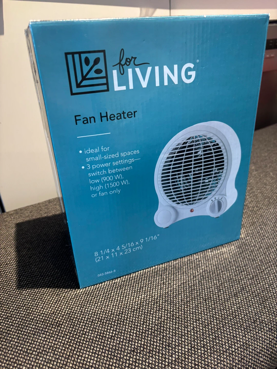 It has 3 power settings, including low (900 W), high (1500 W), or fan only.