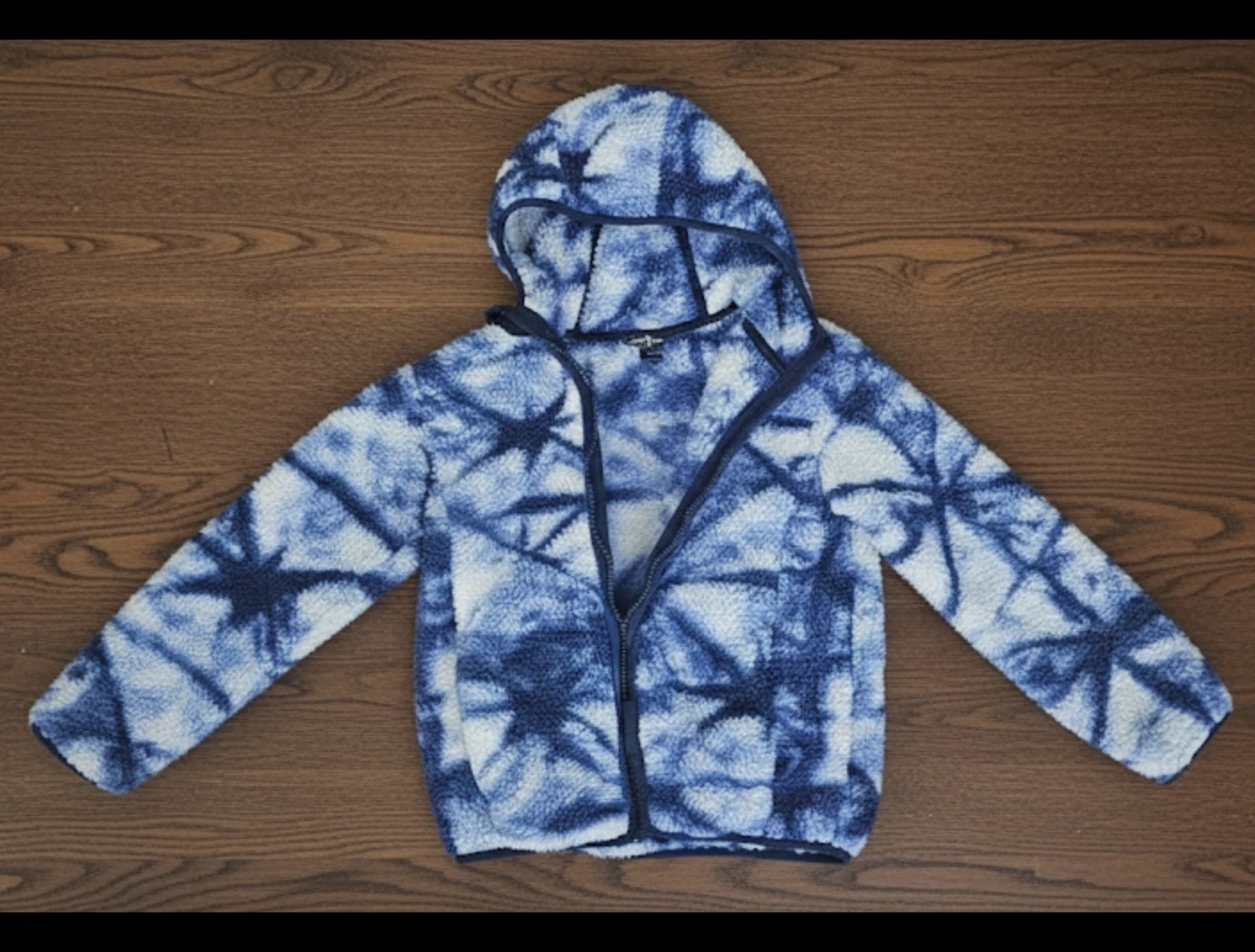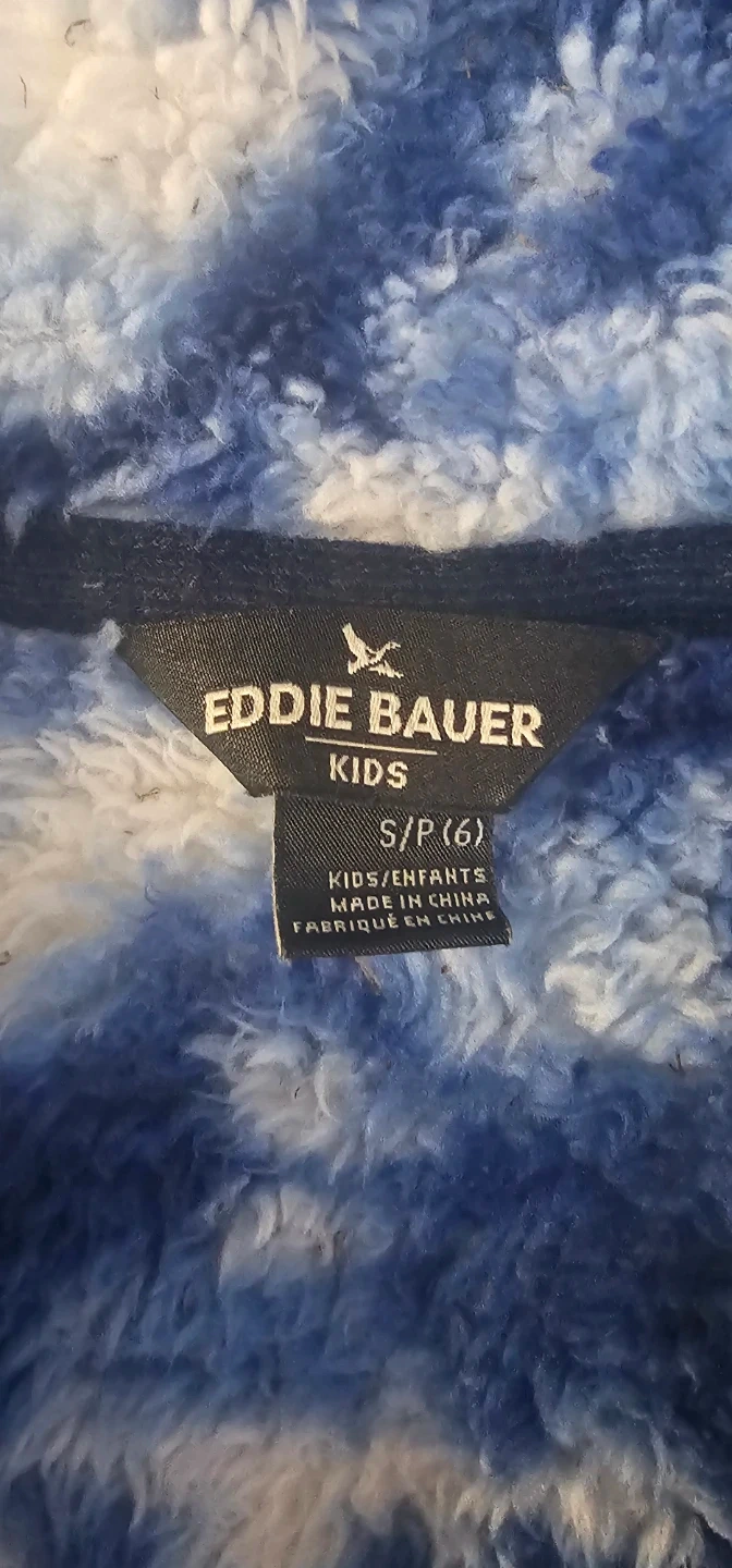 Keep your little one cozy with this adorable Eddie Bauer kids' fleece hoodie! The size is S/P (6), perfect for kids. It features a stylish blue and white tie-dye pattern. Great for layering or wearing on its own during cooler days