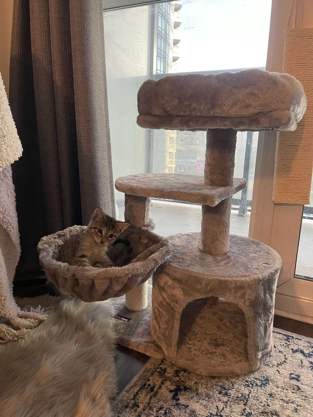 This is my kitten’s first cat tree but I no longer have space for it and my kitten is bigger now. This is perfect for kittens over 6 weeks.
