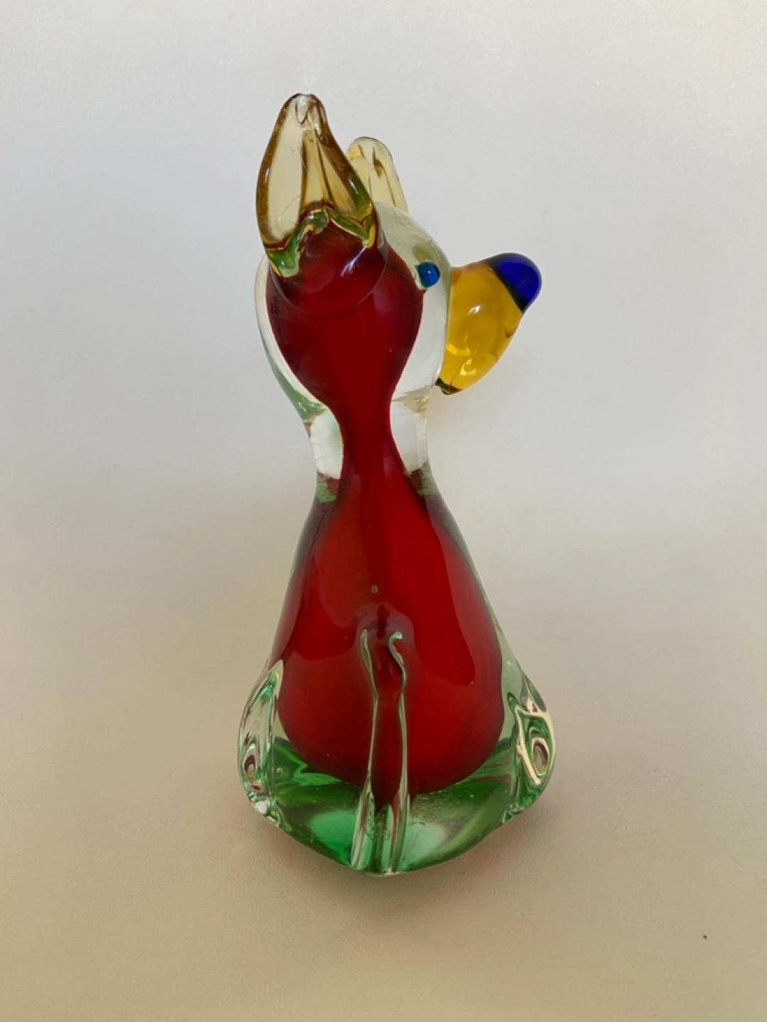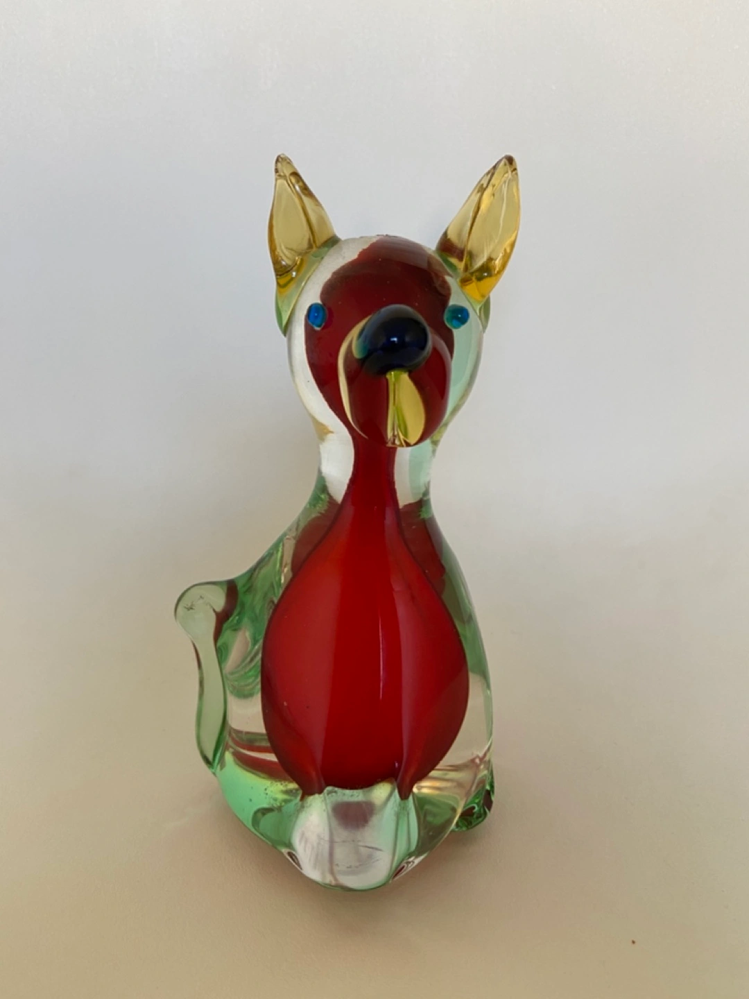 Adorable vintage Murano glass dog figurine. Multicoloured glass. Collectible piece. Perfect for a shelf or mantle.