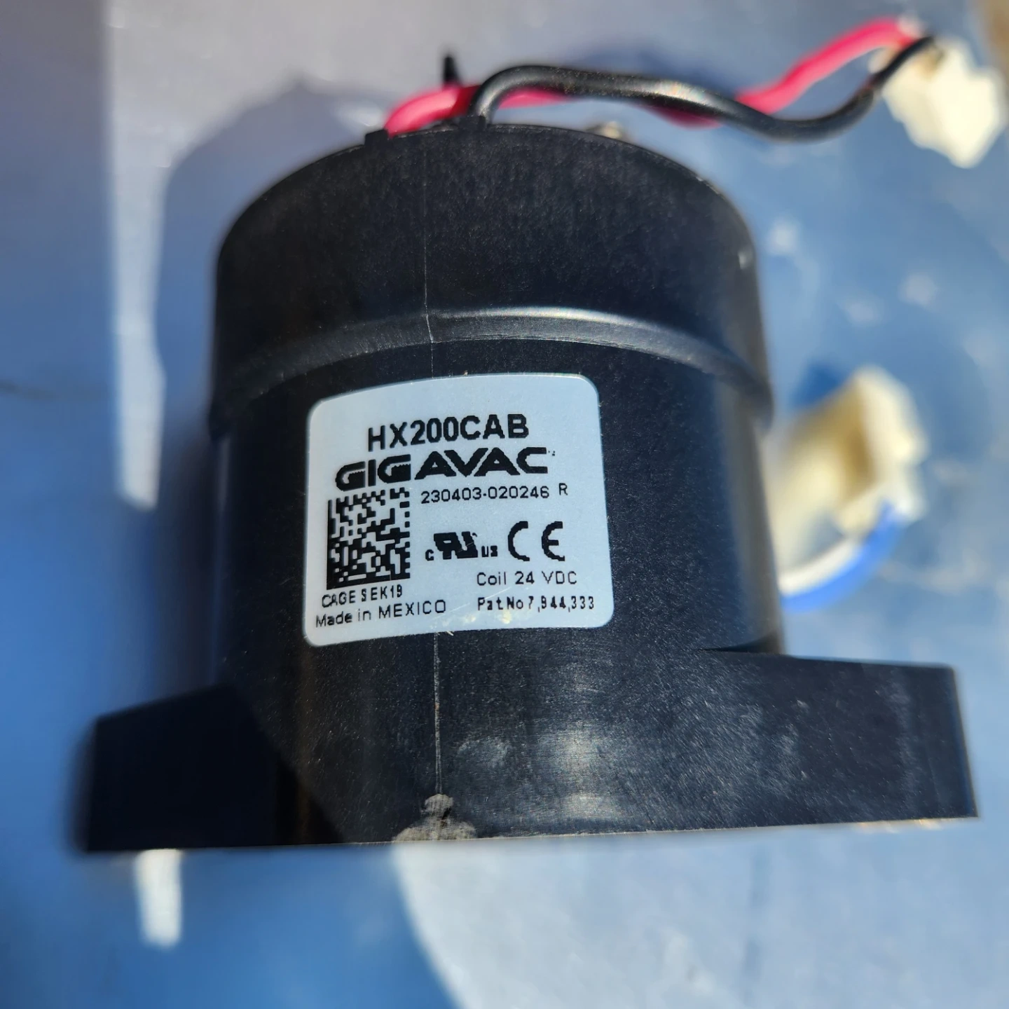 This is a Gigavac HX200CAB solenoid contactor good for 200amps AC/DC. Its coil operates at 24 VDC.