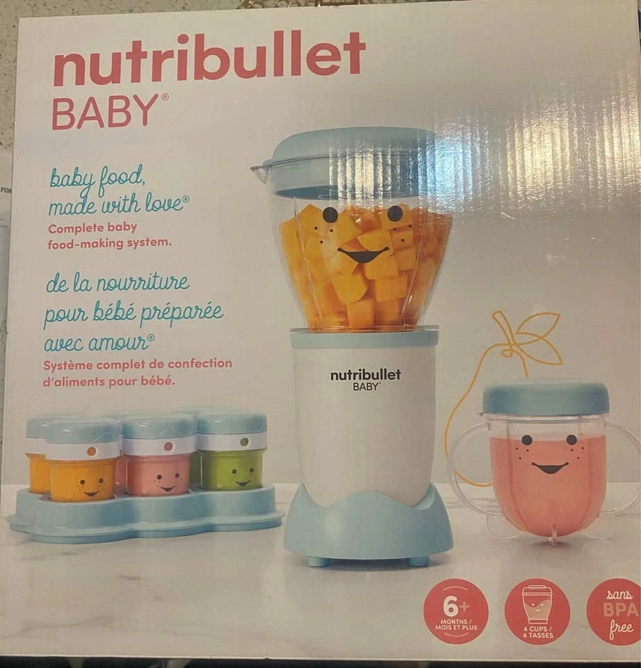 Brand new Nutribullet Baby food maker with storage containers. Complete baby food-making system. BPA free. For babies 6+ months. Feel free to message if you have any questions!