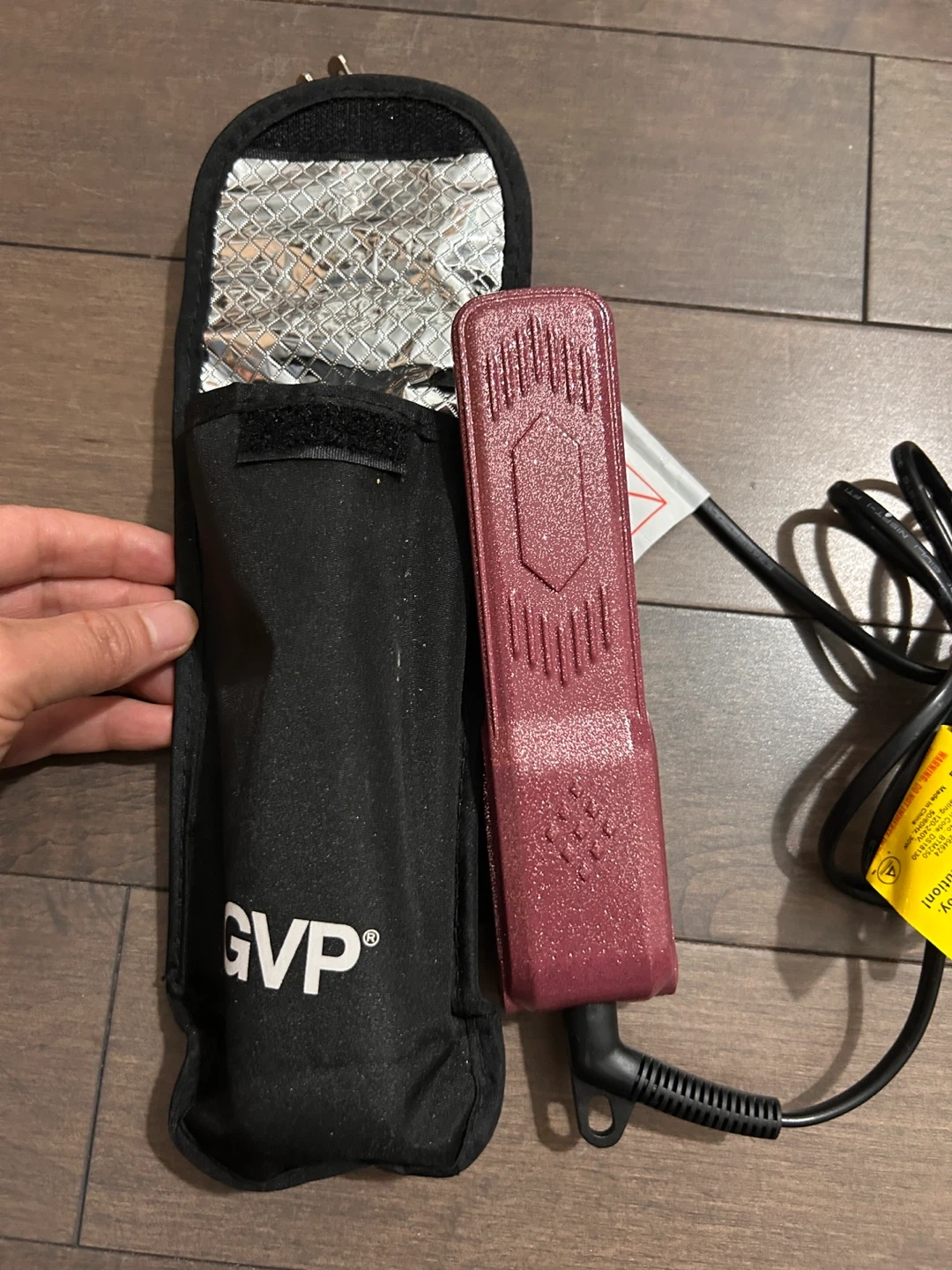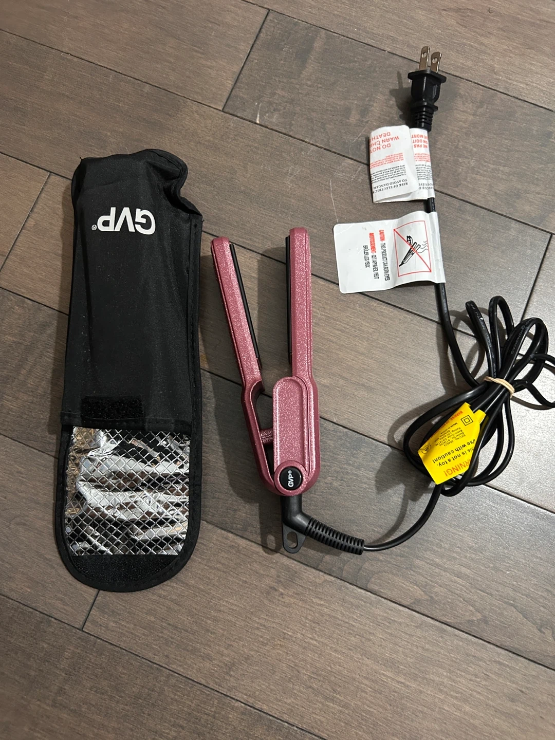 Selling a GVP mini flat iron in pink! It comes with its original carrying case, perfect for travel or storage. It's in great condition and ready for a new home