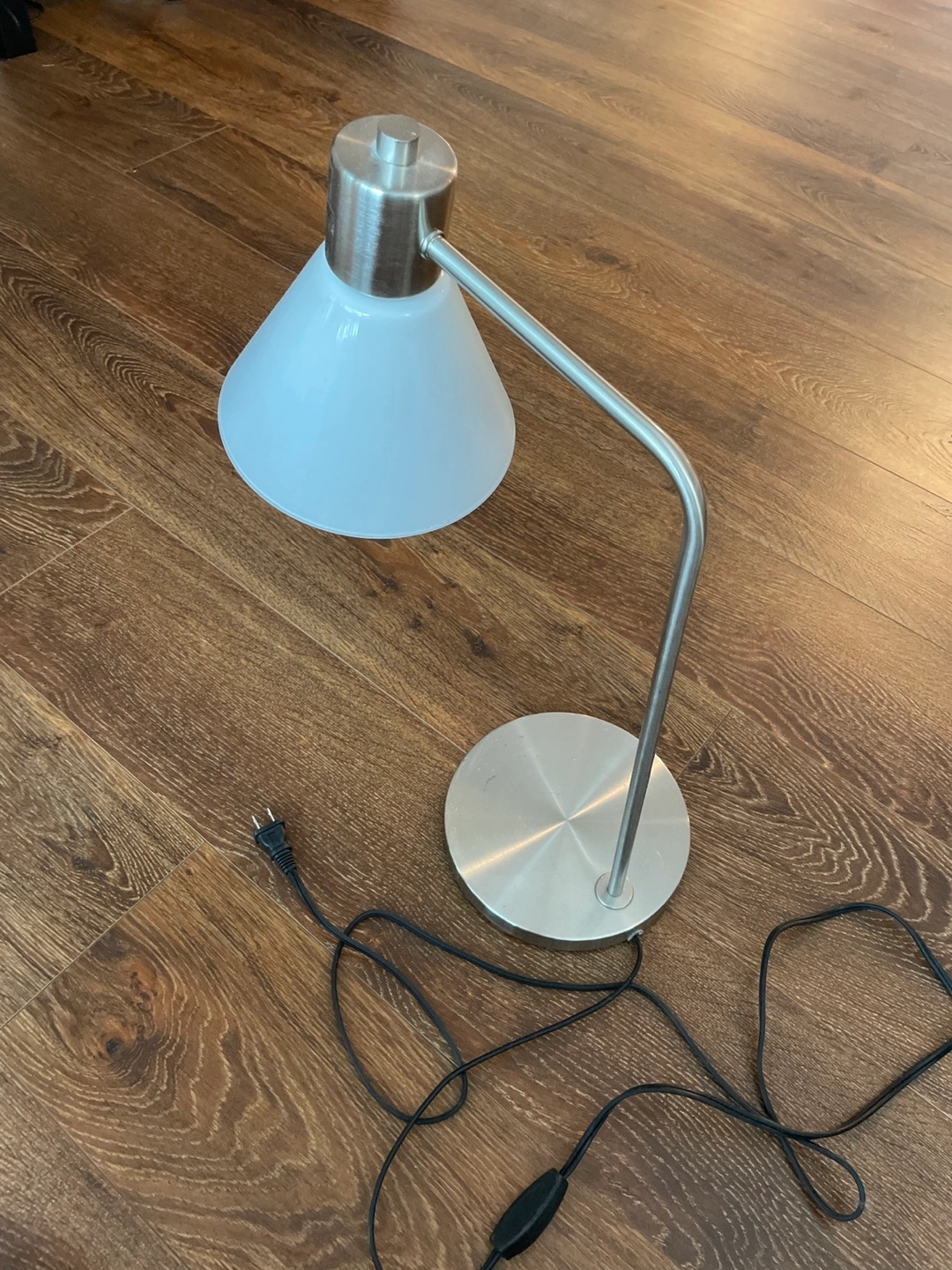 IKEA Modern Brushed Nickel Desk Lamp with White Shade