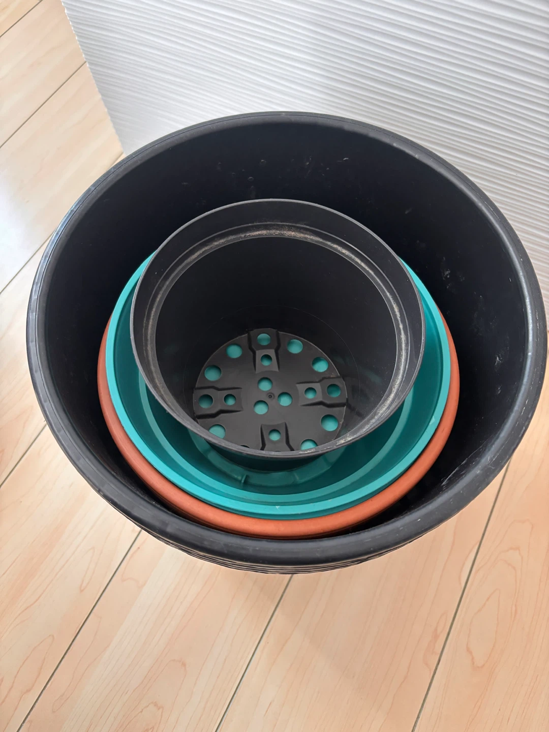 Set of plant pots in various sizes and colours.