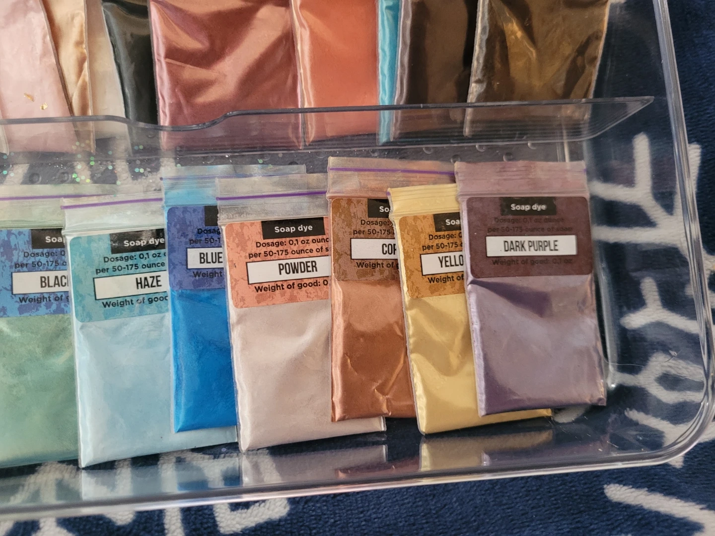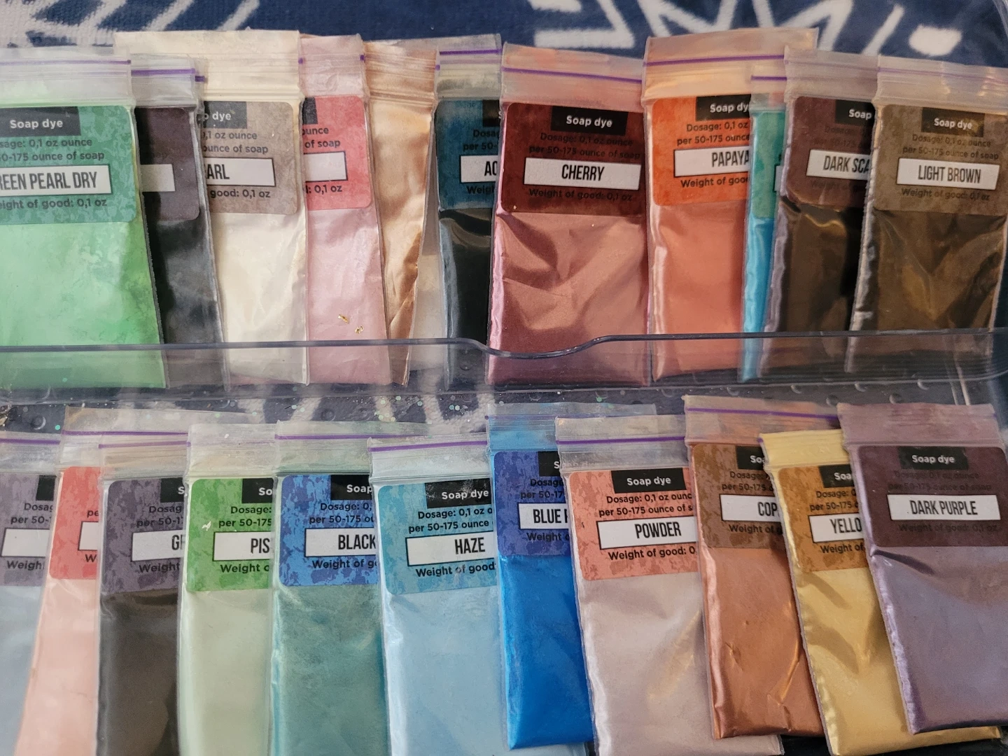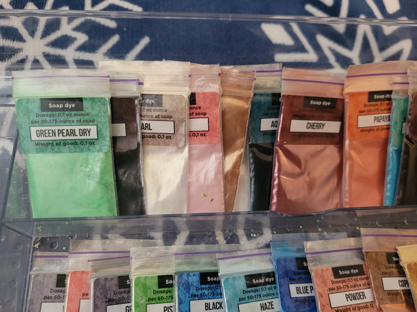 This is a collection of mica powders. Lots of colours! Use to make soap or use in resin or other projects. Some packages partially used. Buyer takes the lot. Pick up in Fergus only.