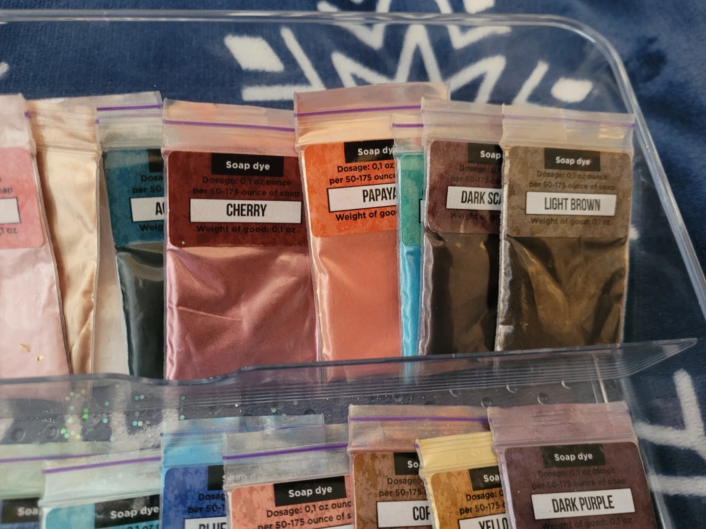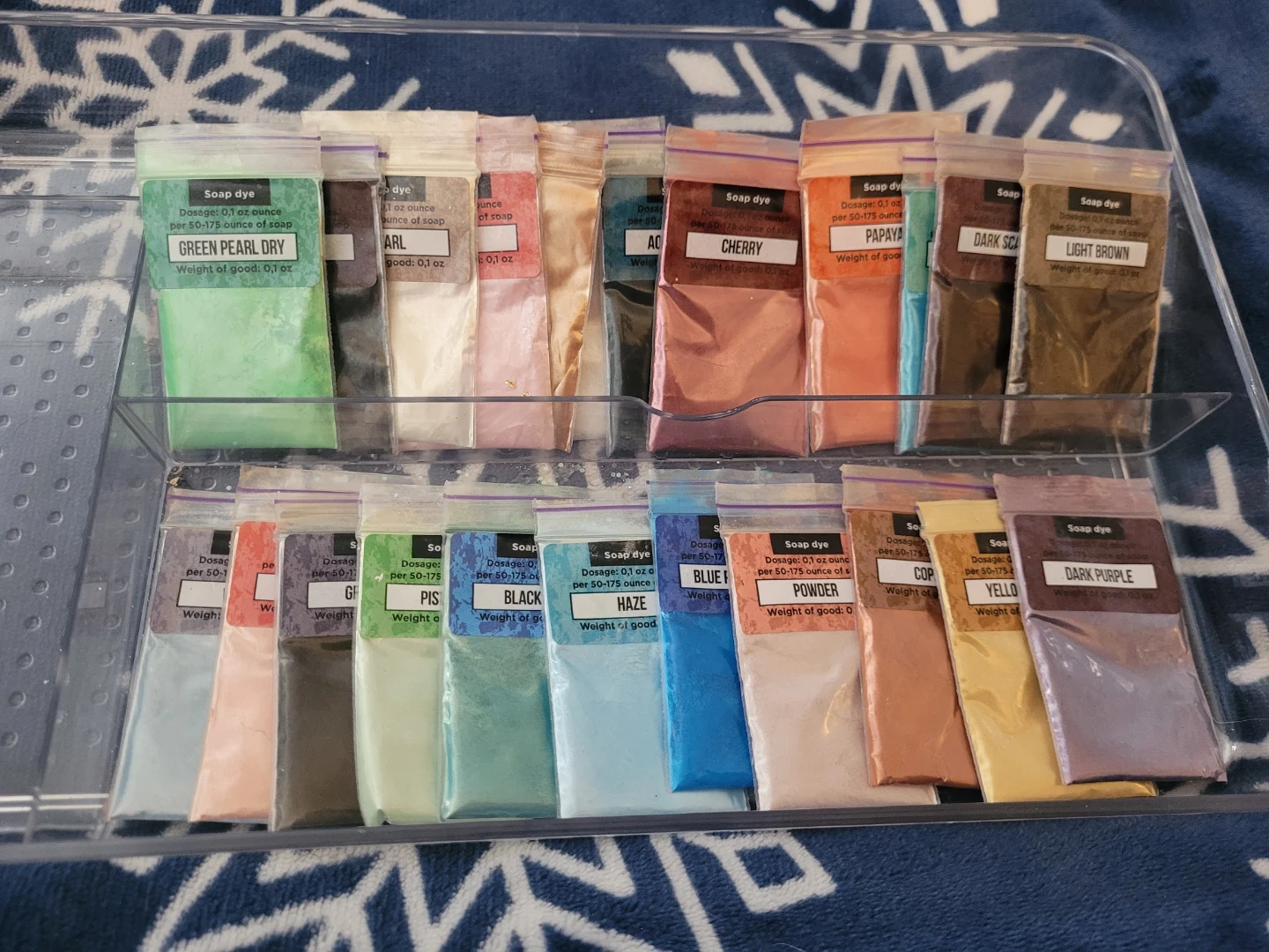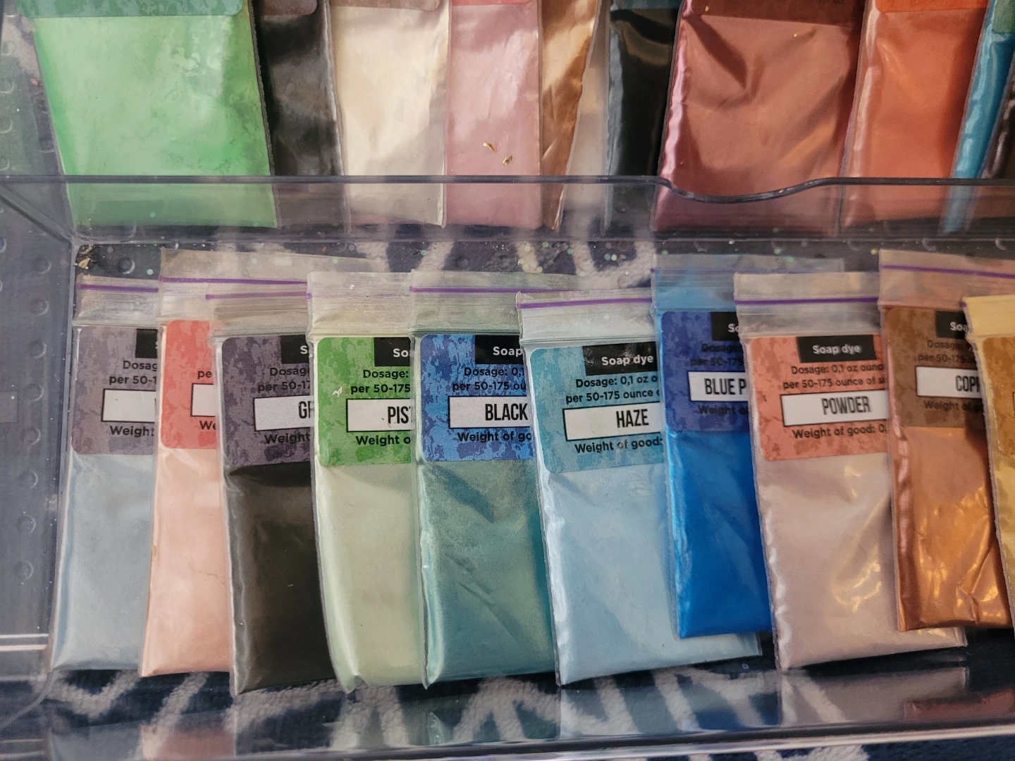 This is a collection of mica powders. Lots of colours! Use to make soap or use in resin or other projects. Some packages partially used. Buyer takes the lot. Pick up in Fergus only.