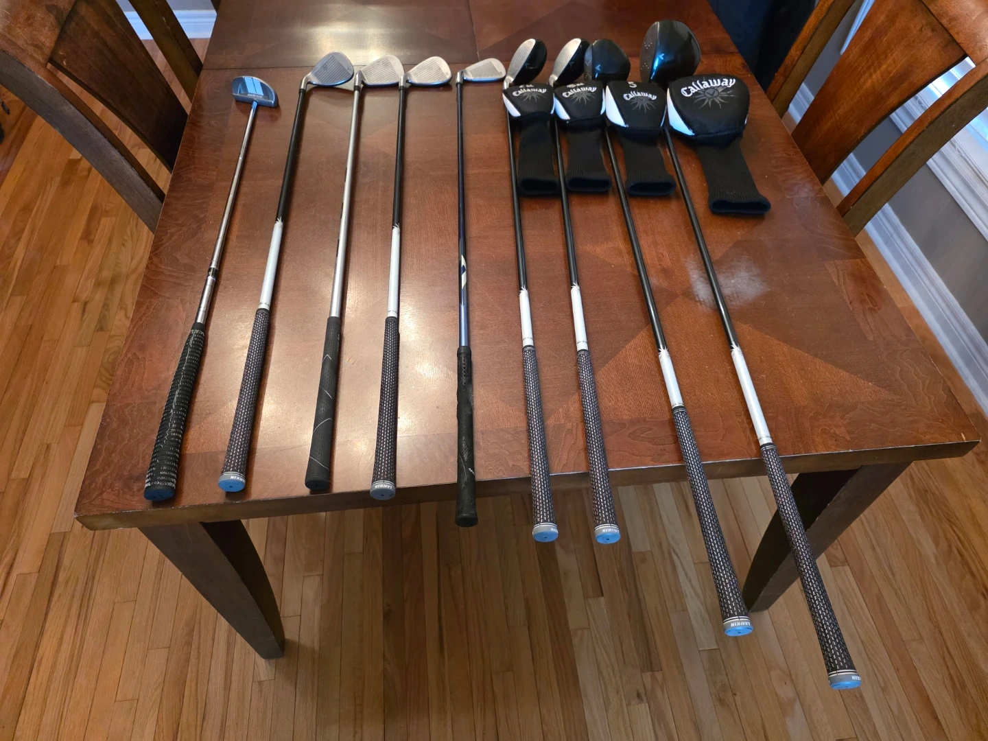 : Driver, Wood 5,. hybrid 6 & 7, Irons 3, 8, 9(not in the set, added from other brand), Sand, Putter and Bag.