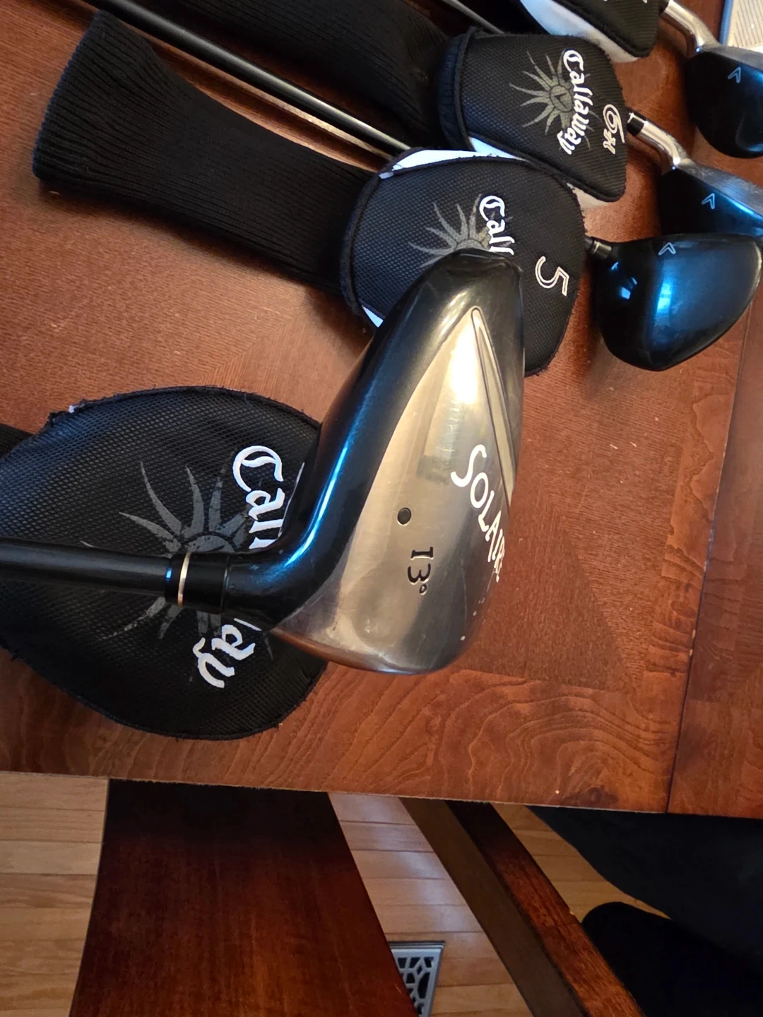 Callaway Solaire ladies golf club. Includes driver, irons, and putter, with headcovers and a Callaway Solaire golf bag. Clubs feature graphite shafts and comfortable grips. Excellent for beginner golfers! New grips(changed in 2025) but a dent in the driver. See the driver picture.