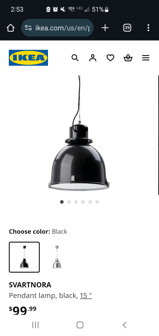 1 / 41 / 4Buy & SellIKEA SVARTNORA Black Pendant Lamp, 15"IKEA SVARTNORA Black Pendant Lamp, 15"$30Black pendant lamp. 15 inches. Industrial style. Good condition. Minor wear.WHERE TO MEETCheck LocationView MapSELLERverifiedjoeFlushing600 reviews0 chats·0 favorites·4 viewsSEND CHAT TO SELLERHi joe! I’m interested in your listing.Hi joe! I’m interested in your listing.Get the Karrot app to chatSign In to chat