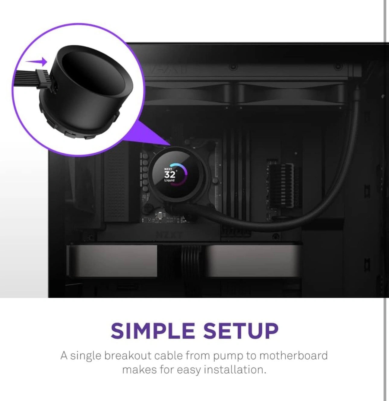 SIMPLE SETUP: A single breakout cable from pump to motherboard makes for easy installation.
