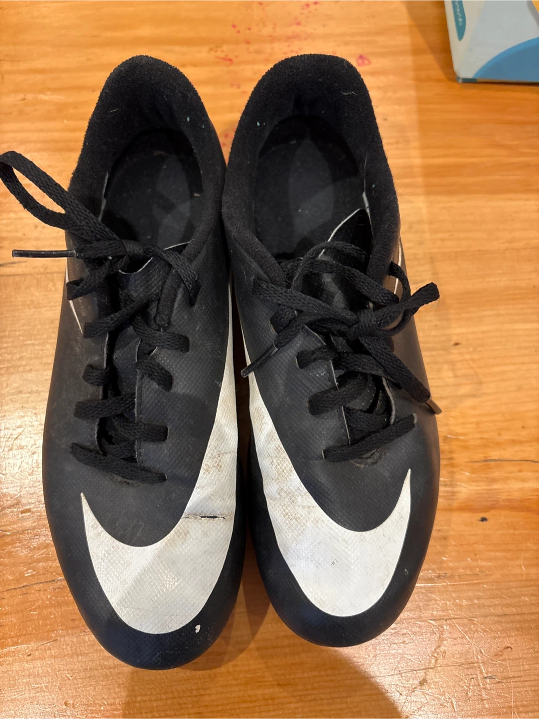 1 / 41 / 4Buy & SellNike Soccer Cleats - Size 2.5 / 3YNike Soccer Cleats - Size 2.5 / 3Y$5Selling a pair of Nike soccer cleats in used condition. They are black and white, and the size is US 2.5 or 3Y. Perfect for a young soccer player!ConditionLike newWHERE TO MEETLaird and EglintonView MapSELLERverifiedDerykLeaside Bennington600 reviews0 chats·0 favorites·37 viewsSEND CHAT TO SELLERHi Deryk! I’m interested in your listing.Hi Deryk! I’m interested in your listing.Get the Karrot app to chatSign In to chat