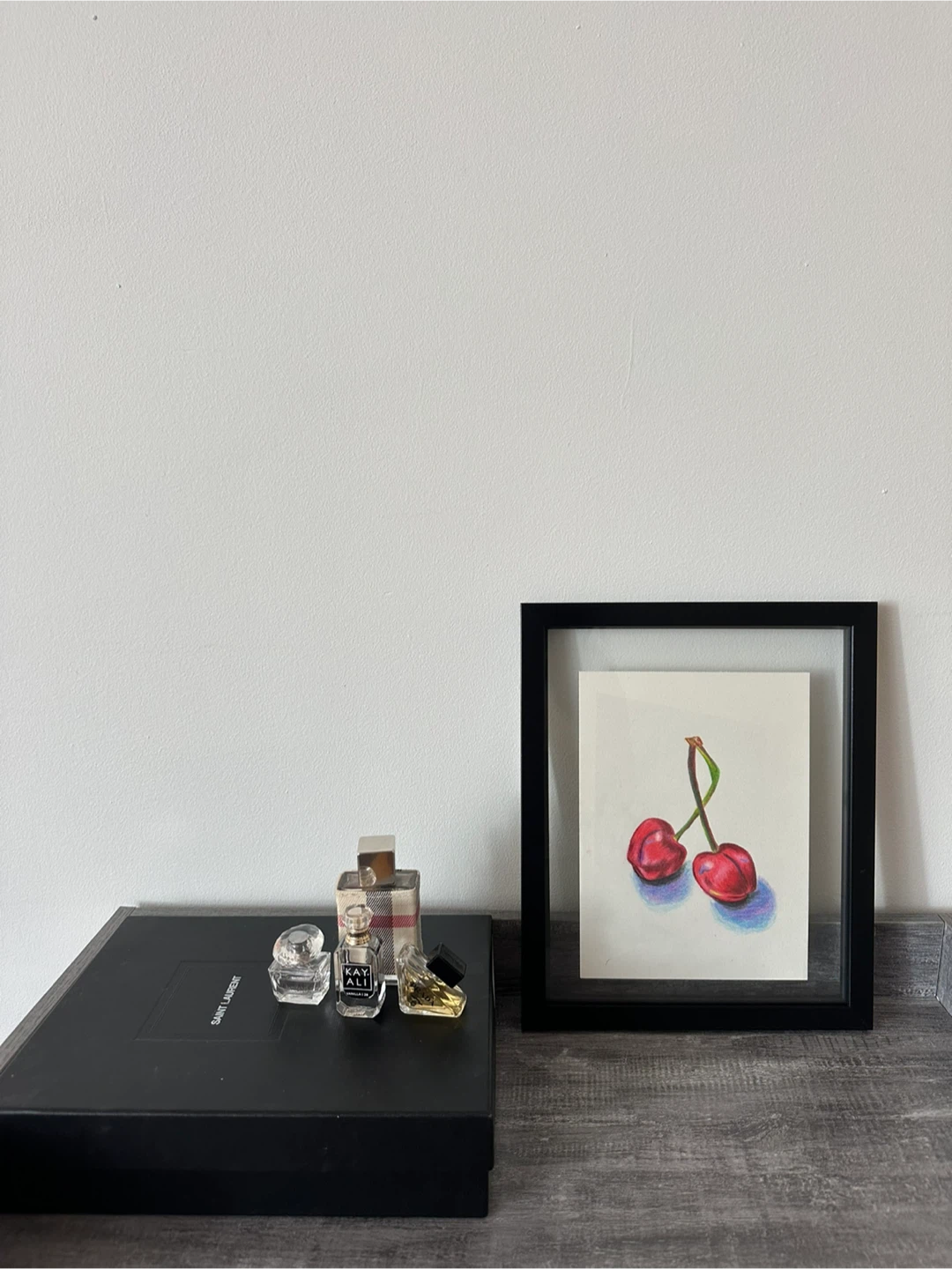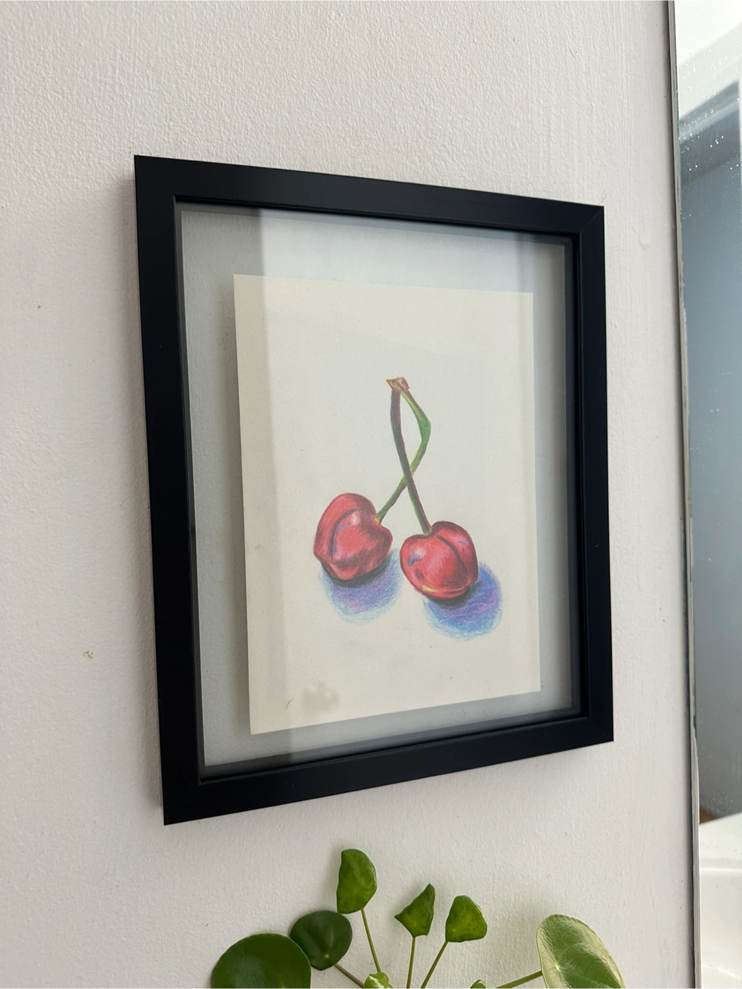1 / 21 / 2Buy & SellFramed Cherry ArtworkFramed Cherry Artwork$30A charming framed artwork featuring a coloured pencil drawing of two cherries. The piece is presented in a simple black frame. Size: 9"x 11"WHERE TO MEETCheck LocationView MapSELLERverifiedCharCharLakeshore650 reviews0 chats·0 favorites·8 viewsSEND CHAT TO SELLERHi CharChar! I’m interested in your listing.Hi CharChar! I’m interested in your listing.Get the Karrot app to chatSign In to chat