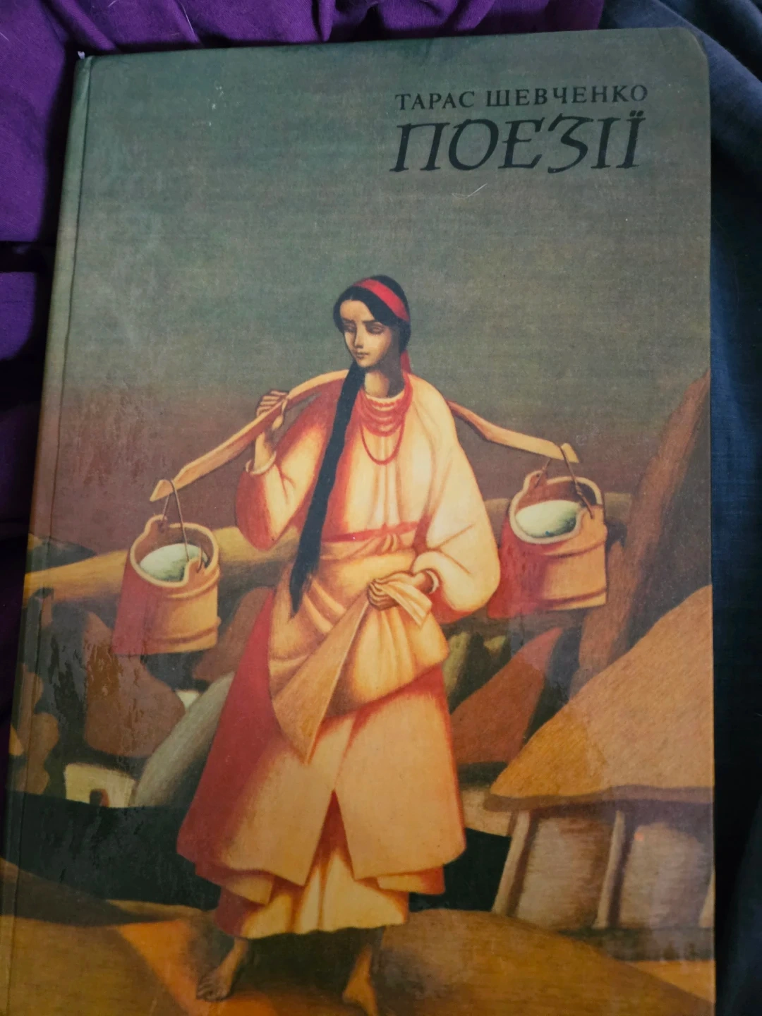 This is a hardcover collection of poetry by Taras Shevchenko. The cover features an illustration of a woman carrying water buckets. Includes classic Ukrainian literary works.